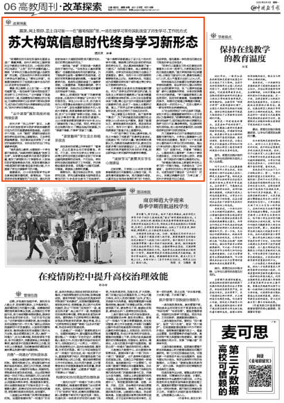 慕课、网上答辩、云上自习室……在“最宅假期”里,一场在线学习革命深刻改变了师生学习、工作的方式。“‘云中课堂’不再是师生济济一堂,而是散落在天南海北的IP地址,它将帮助同学们从阶段学习转向终身学习,成为我们共同开创大学教育新纪元的起点。”苏州大学校长熊思东说。