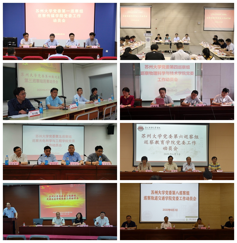 6月3日至4日,八个巡察组先后分别进驻传媒学院、能源学院、纺织与服装工程学院、物理科学与技术学院、光电科学与工程学院、教育学院、社会学院和轨道交通学院,召开了巡察工作动员会。八家被巡察单位的党政领导班子成员、中层干部、党支部书记以及巡察组全体成员参加了动员会。
