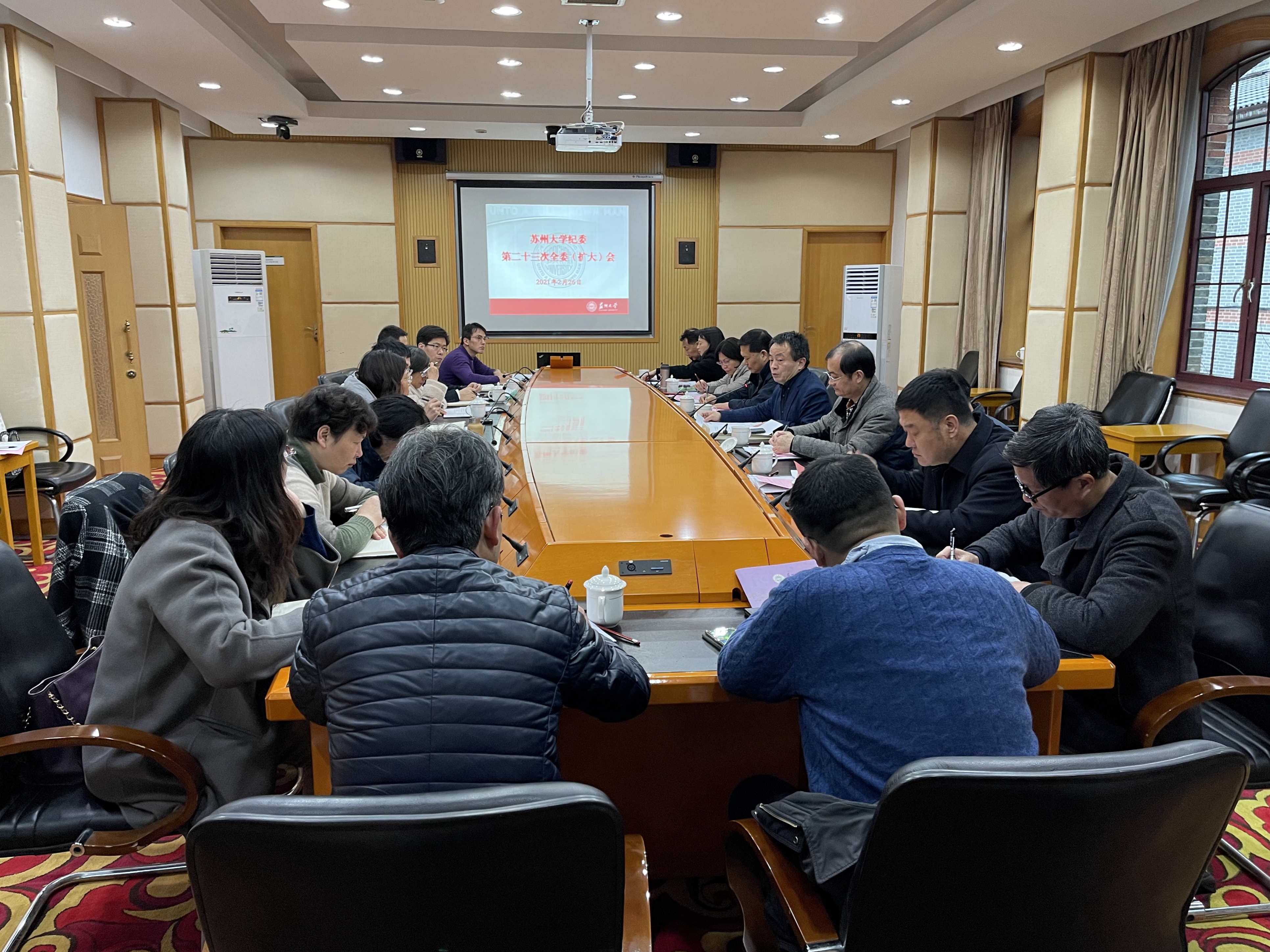 会议学习了习近平总书记在中央纪委五次全会上的重要讲话精神以及中央纪委五次全会、省纪委六次全会精神,学习了习近平总书记在中央全面深化改革委员会第十八次会议、党史学习教育动员大会上的重要讲话精神,传达学习了校党委十二届十一次全体会议和全校干部大会精神,审议通过了《苏州大学纪委、派驻监察专员办2021年工作计划》及《中共苏州大学纪律检查委员会2021年度落实全面从严治党监督责任清单》,通报部署了校纪委近期工作。