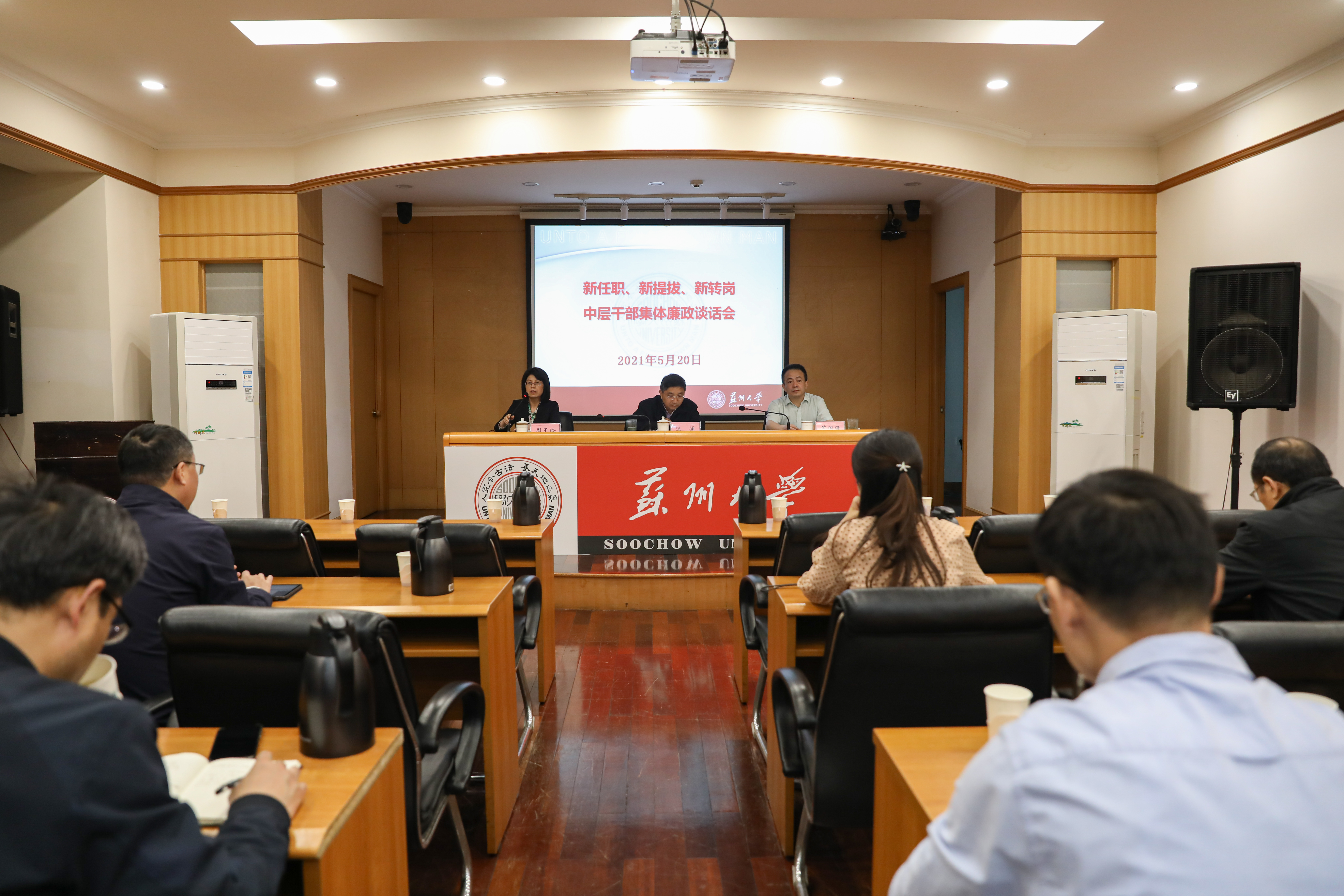 为深入贯彻落实全面从严治党要求,严明政治纪律政治规矩,增强干部遵纪守法自觉、廉洁自律意识,打造忠诚干净担当干部队伍,2021年5月20日上午,我校在红楼会议中心115室召开新任职、新提拔、新转岗中层干部集中廉政谈话会,2020年4月以来“三新”干部参加本次谈话会。校党委书记江涌,校党委常委、纪委书记、监察专员芮国强出席会议并讲话。会议由校党委常委、组织部部长周玉玲主持。