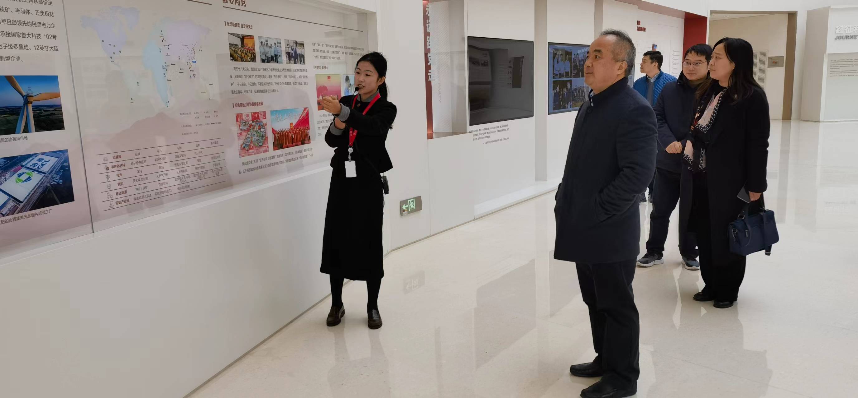 在协鑫集团展厅,查佐明一行认真听取企业发展历程介绍,仔细观看产品样品展示、工程项目沙盘和企业文化宣传片。苏大校友、协鑫集团副总裁陈飞陪同参观。