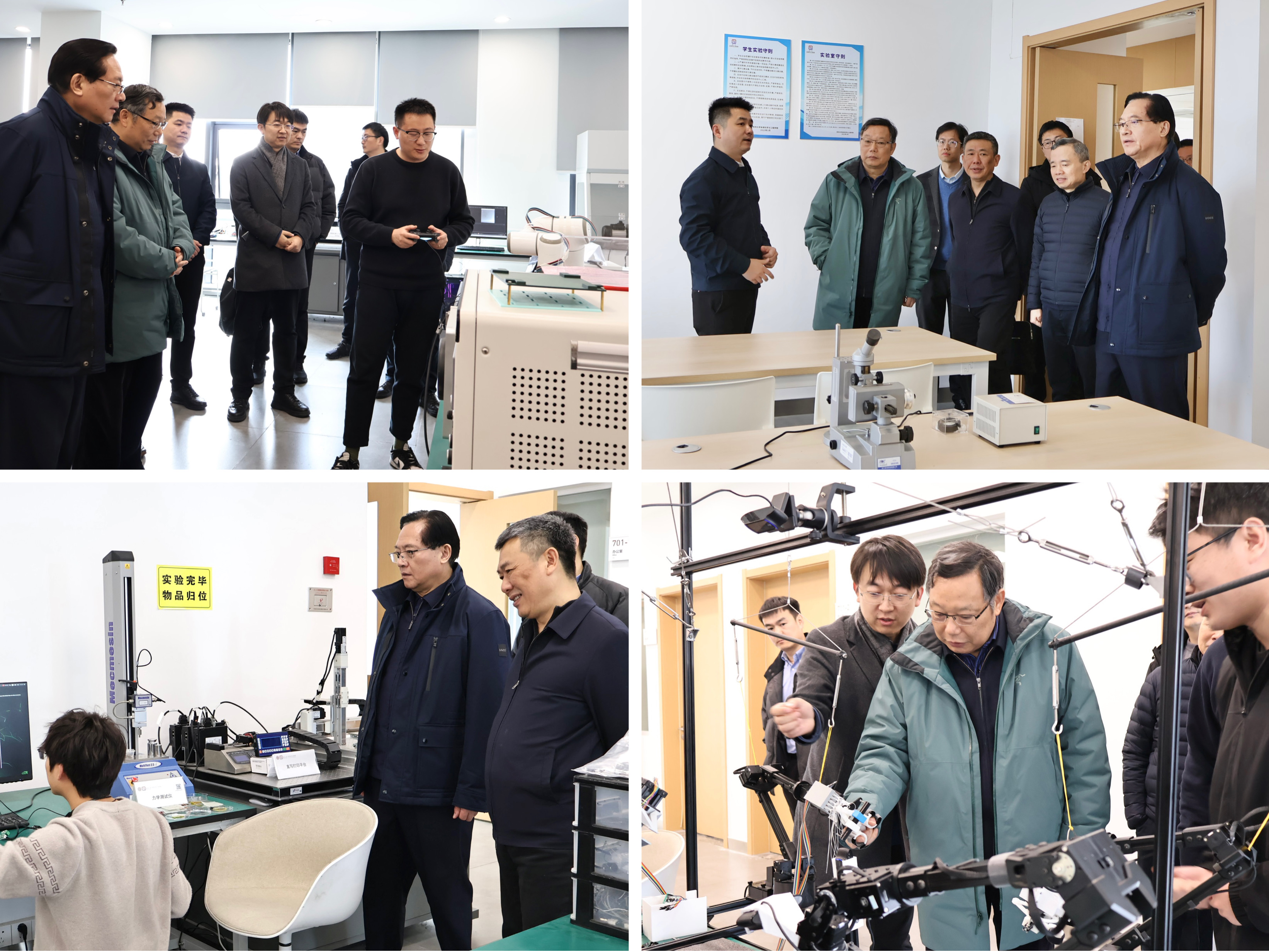 调研组考察了学术交流中心,听取了校区规划设计、建设进展、人才培养、产教融合等情况的汇报。在未来科学与工程学院机器人创新中心、智能感知与智能系统中心、工业互联网与智能系统中心等实验室平台,调研组详细了解了未来科学与工程学院近年来的发展情况。