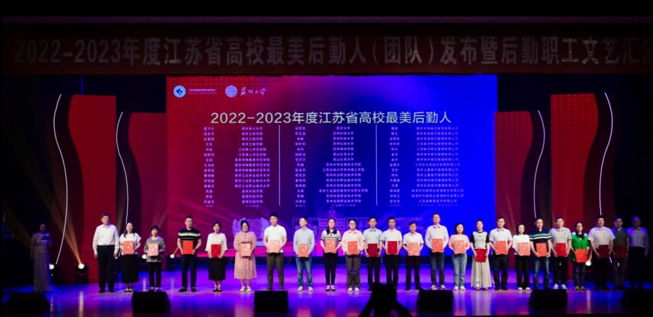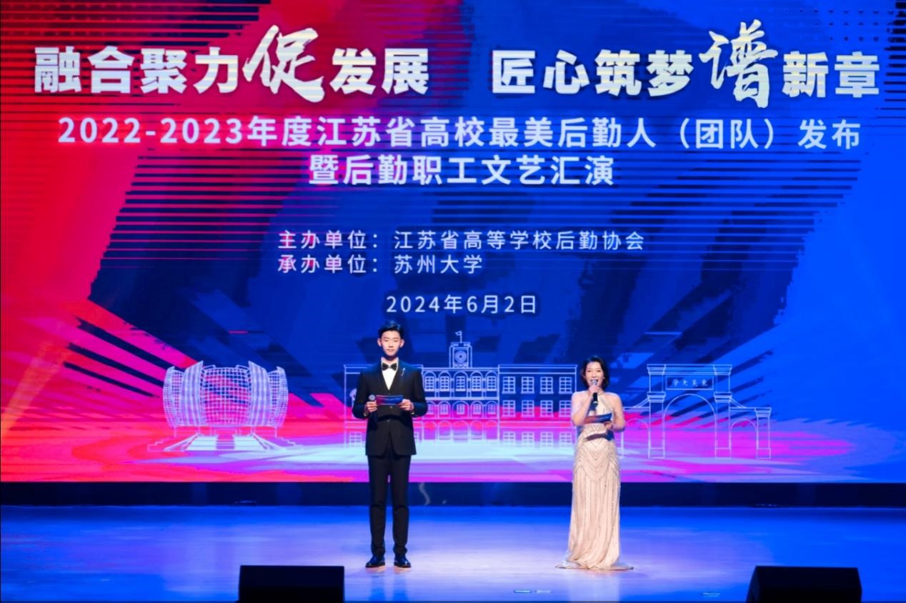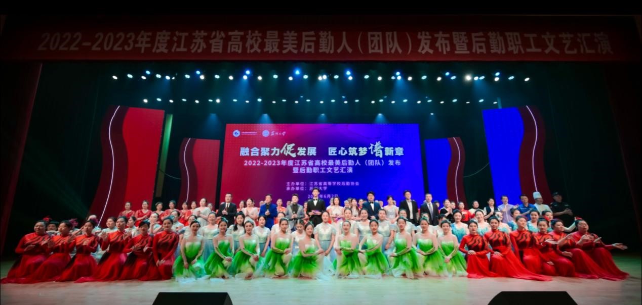 融合聚力促发展,匠心筑梦谱新章。6月2日,由省高等学校后勤协会主办,我校承办的“2022-2023年度江苏省高校最美后勤人(团队)发布暨后勤职工文艺汇演”在天赐庄校区存菊堂举行。