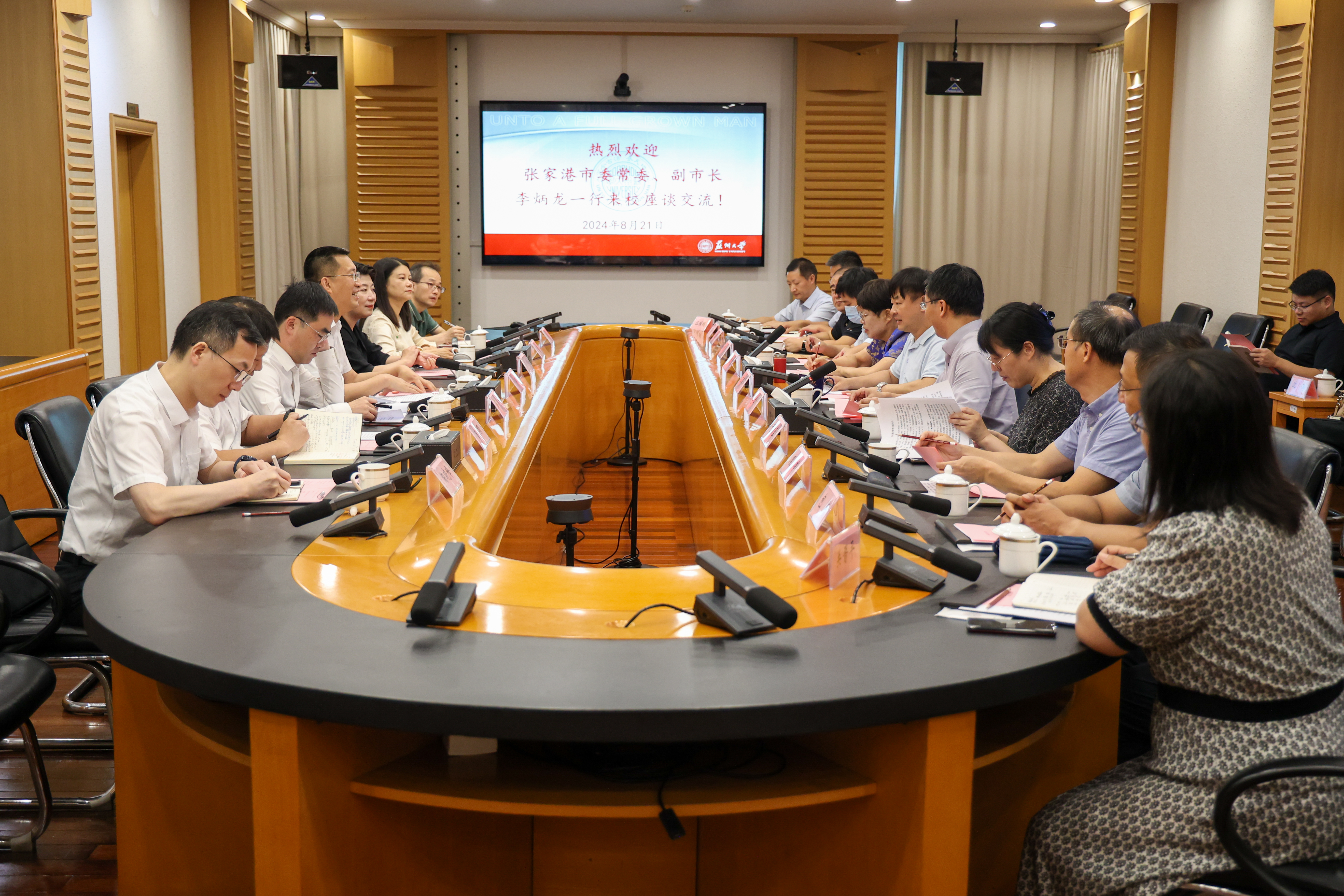 8月21日下午,张家港市委常委、副市长李炳龙,市政府副市长翁羽人一行莅临我校,专题拜访校长、中国工程院院士应汉杰,双方还就进一步深化校地合作开展座谈交流。校党委常委、副校长李孝峰,苏州市科协主席、我校路建美教授出席会议,张家港相关部门负责人,我校相关职能部门、学院(部)负责人参加会议。会议由李孝峰主持。