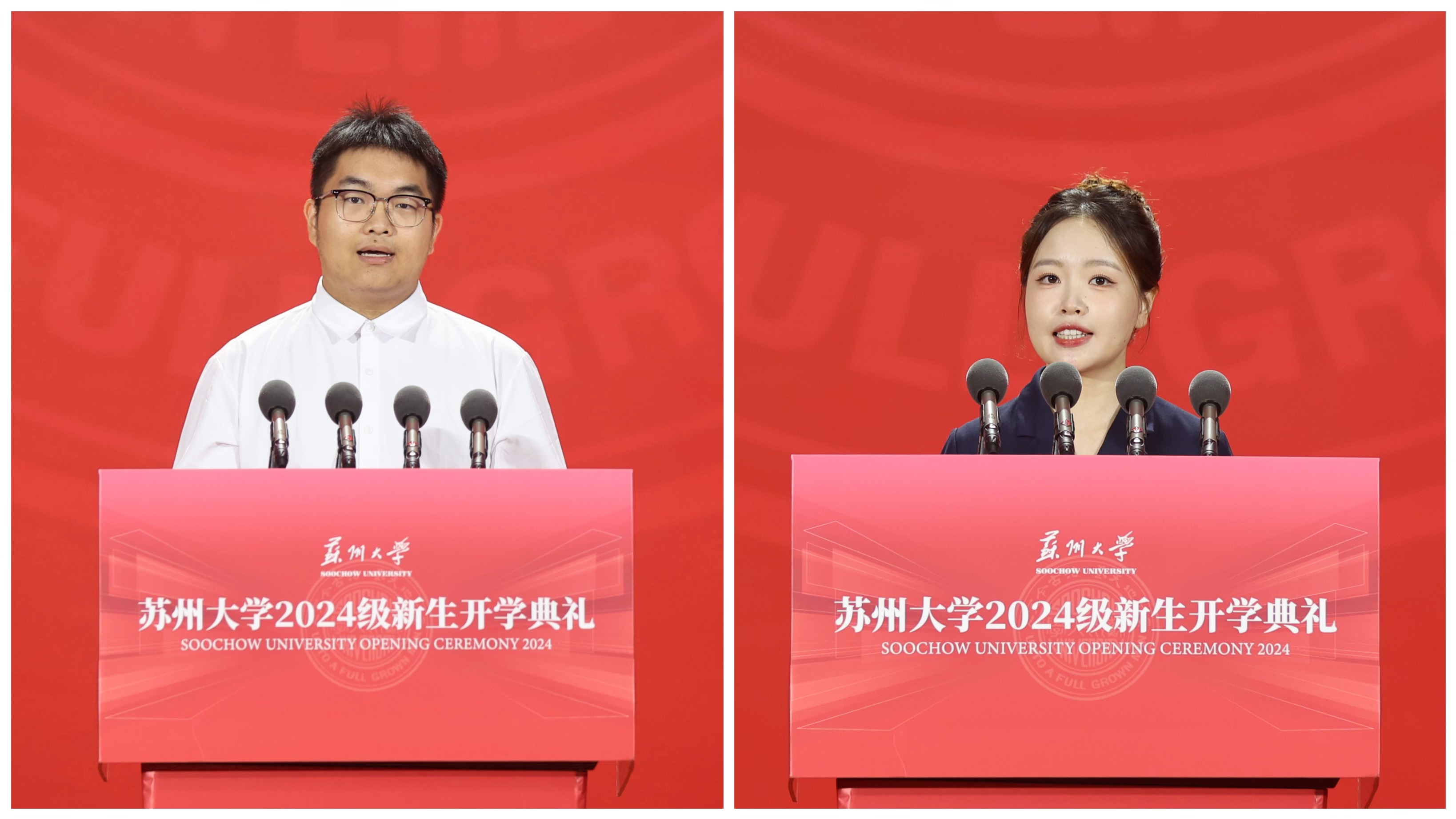 本科生新生代表、苏州医学院临床医学专业的胡钰莛同学分享了他的成长故事和与苏大的不解之缘。他表示,将秉承天地的浩然正气,培养正直善良的品质,以古今圣贤为榜样,不断磨砺自己的优秀品格,努力成为有担当、有作为的大写的人。老生代表、2022级王健法学院硕士研究生姜钰卓鼓励新同学要在苏大的广阔舞台上,做刻苦学习、积极探索的奋进者;做勇于追求、改革创新的创造者;做赤诚奉献、矢志不渝的实干者,用行动和奉献践行“强国有我”的誓言。