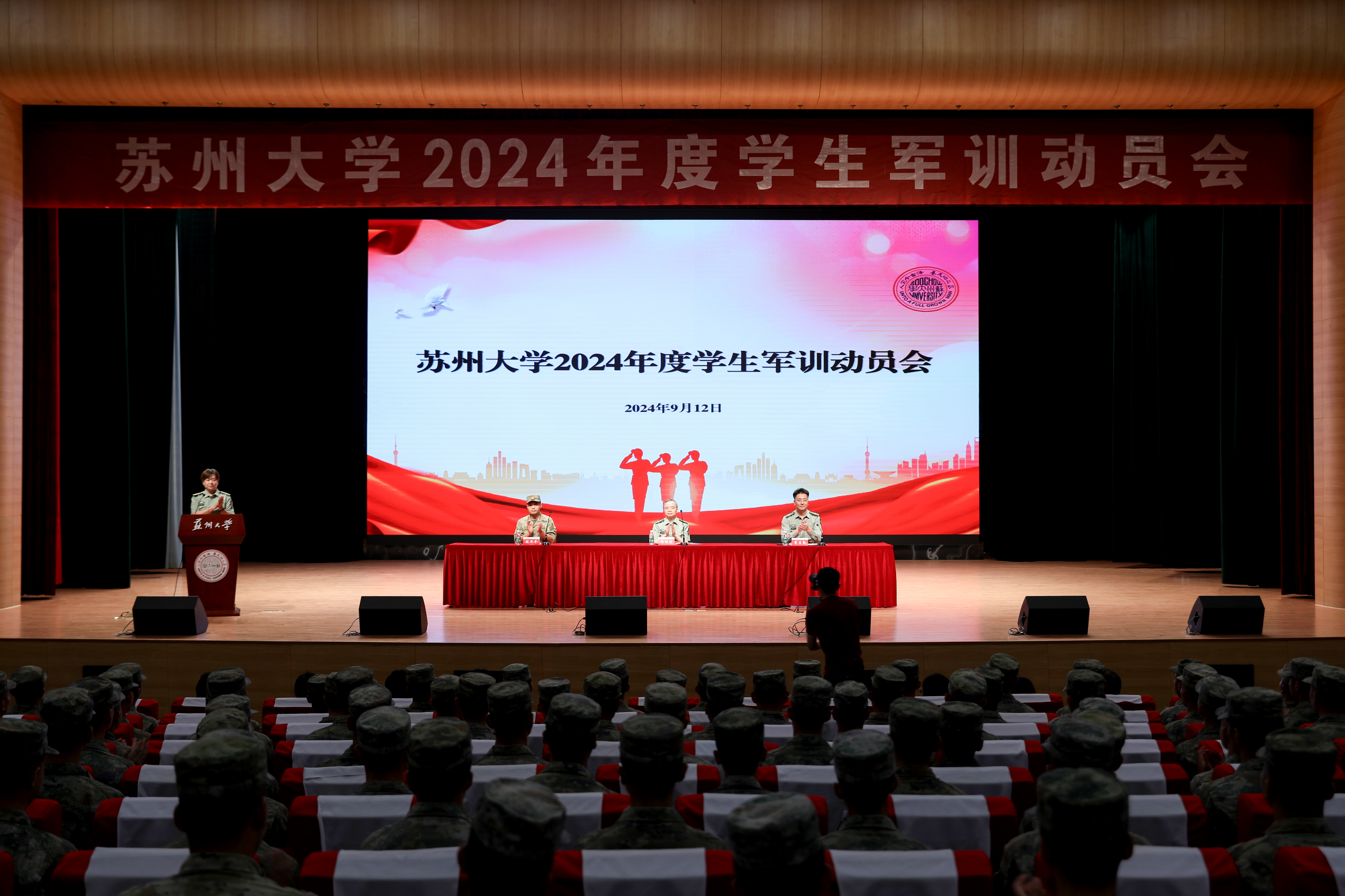 9月12日上午,苏州大学2024年度学生军训工作动员会在天赐庄校区存菊堂召开。校党委副书记、副校长沈明荣,中国人民解放军陆军某部领导、苏州大学军训团团长张教官,我校人民武装部部长、苏州大学军训团政委董召勤出席动员会。全体承训教官,学校军训工作领导小组成员单位领导,各军训营教导员,各学院(部)分管学生工作领导以及军训连指导员,2024级全体参训学生参加动员会。会议由人民武装部副部长、军训团副政委宋海英主持。