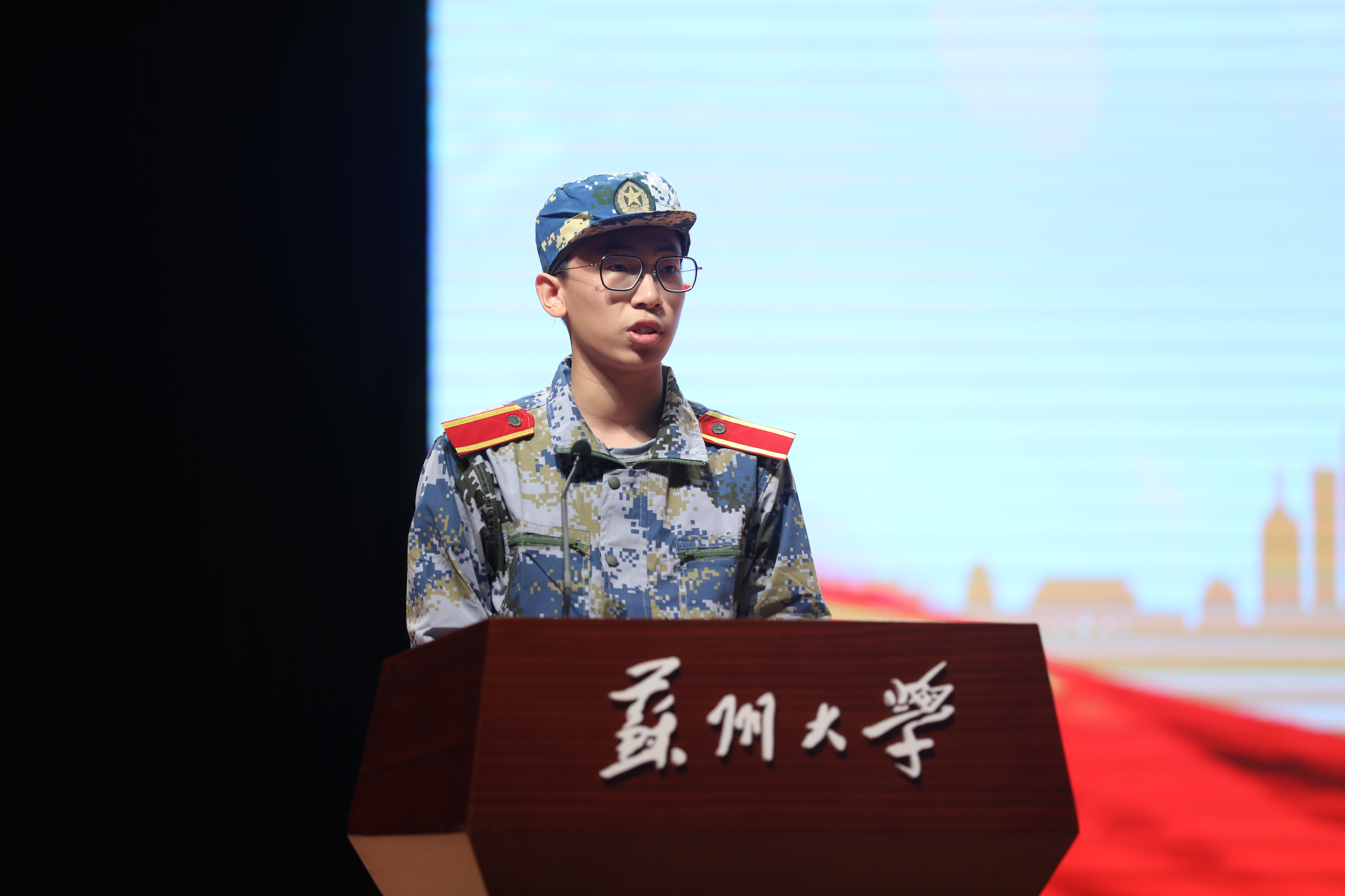 计算机科学与技术学院2024级新生黄天烁代表全体参训学生发言。他表示,军训是进入大学后的第一堂实践课,不仅是对身体素质的锻炼,更是对意志品质的磨砺。全体参训同学将服从纪律,团结互助,以新时代青年的责任与担当,全身心投入本次军训。