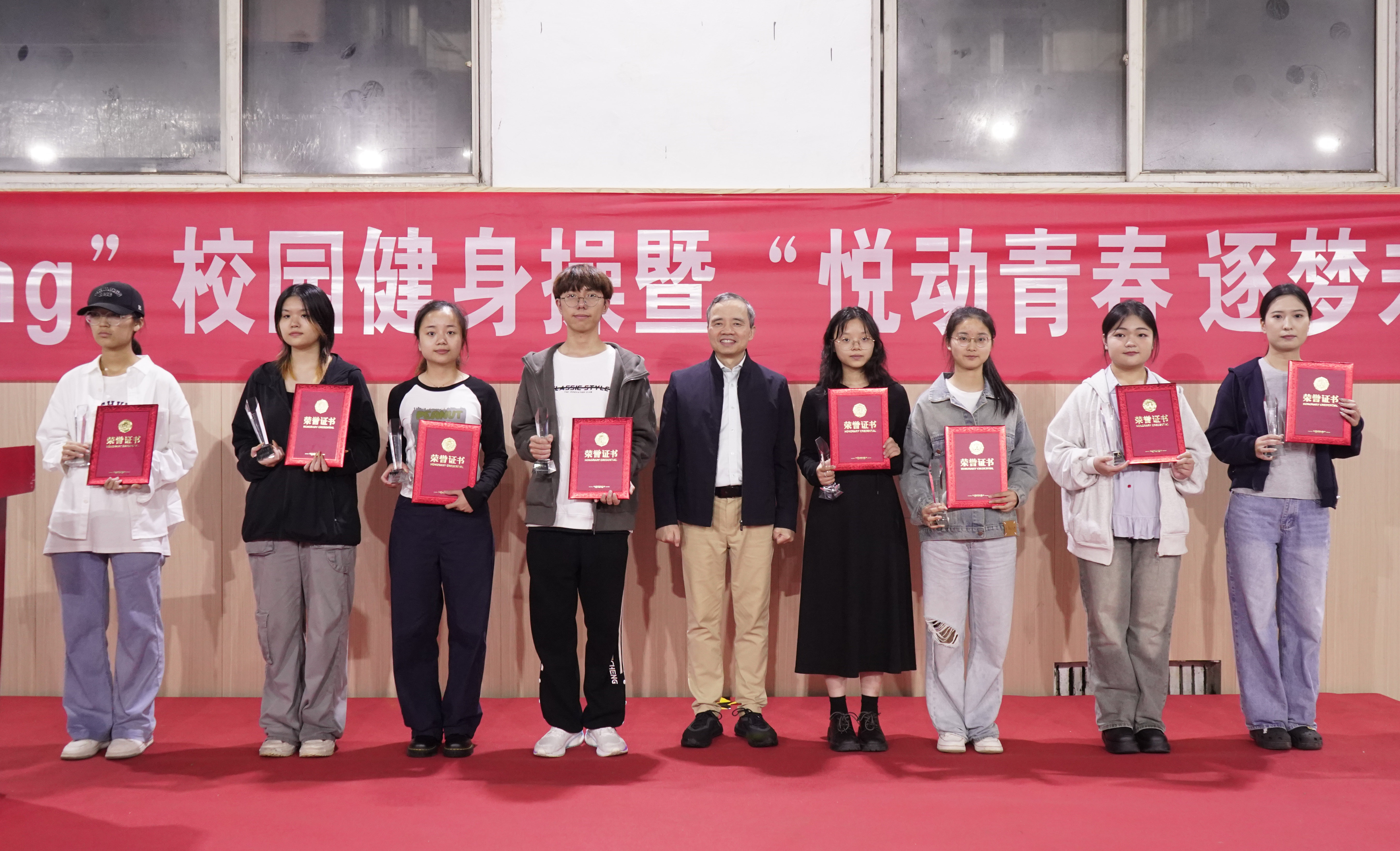 来自体育学院和酷玩音乐社的同学们带来了精彩的开场表演,点燃了现场氛围。吴雪梅、于潜驰为2023-2024学年第二学期“苏Young”校园健身操最美领操员、“苏Young”校园健身操达人获奖代表颁发奖状,沈明荣为“苏Young”校园健身操活力团支部获奖代表颁发奖状和奖杯。