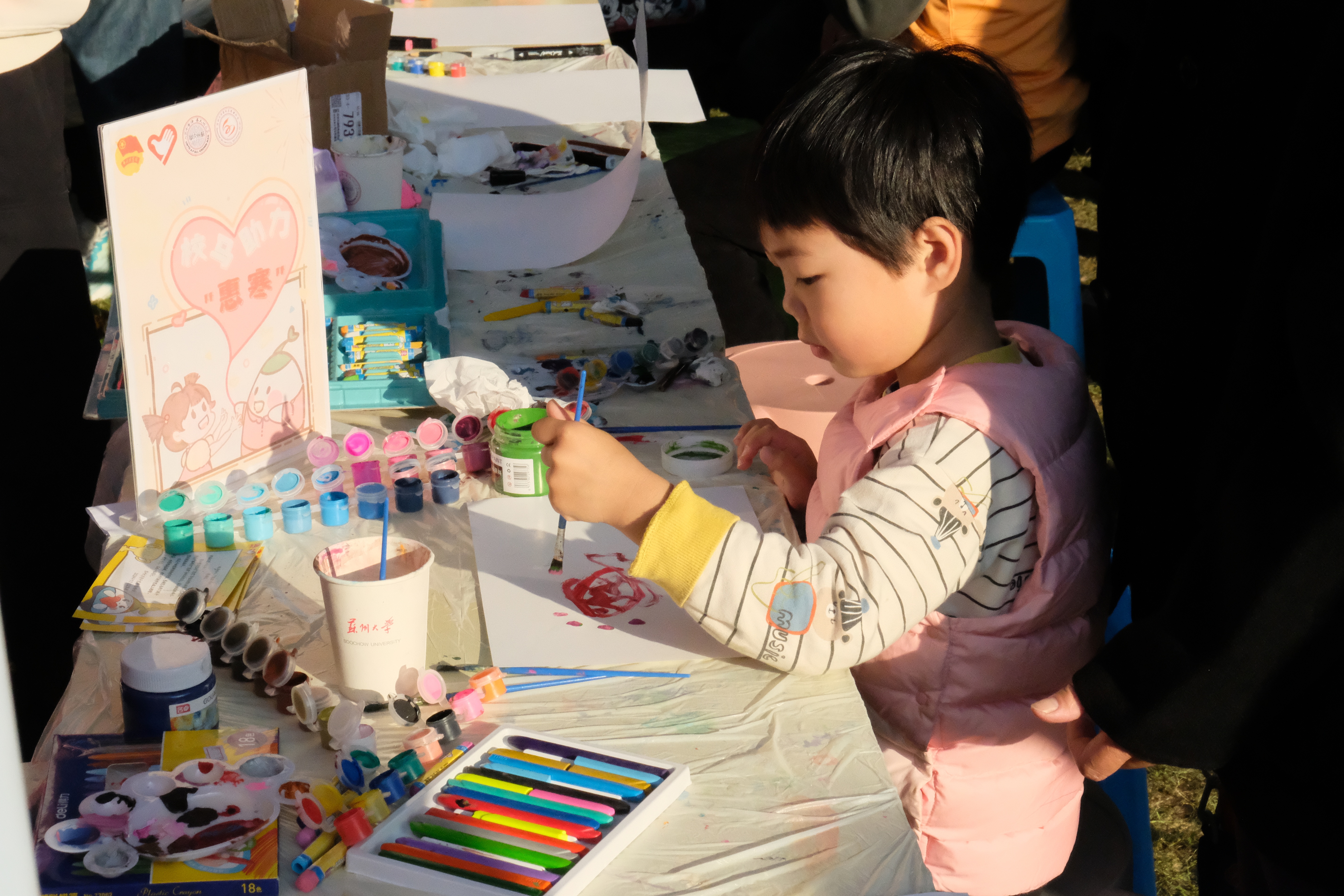 值得一提的是,本次校园马拉松设有“惠寒”活动专区,旨在弘扬苏大百年“惠寒”志愿服务精神,让更多人认识“惠寒”,了解“惠寒”,并为“惠寒”志愿服务品牌建设添砖加瓦。粘土钥匙扣、帆布袋彩绘、投壶、两人三足,欢乐的活动现场拉近了大家的距离。
