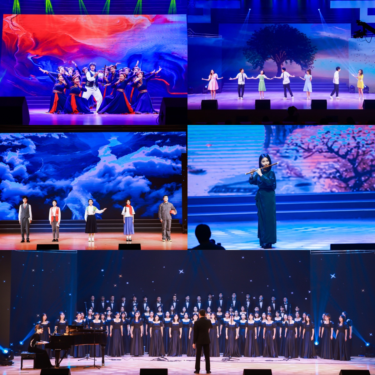 在“家国情怀·艺颂华章”篇章,原创舞蹈作品《砥砺前行》再登舞台,描绘了中国登山队队员在面对重重困难与挑战时所展现出的坚韧不拔与不懈努力,该作品曾获全国第六届大学生艺术展演活动一等奖、优秀创作奖,江苏省第六届大学生艺术展演活动特等奖、优秀创作奖。朗诵《较量》生动再现了上世纪四十年代,远东国际军事法庭的历史场景,展现了中国人民的凛然正气和不可战胜的力量,该作品曾获全国第七届大学生艺术展演活动一等奖、优秀创作奖,江苏省第七届大学生艺术展演活动特等奖、优秀创作奖。由苏州大学音乐学院卞浩雄老师带来的蒙古族经典民歌《鸿雁》,诉说着对远方亲人的思念以及对故乡无尽的眷恋。卞浩雄和卓琳两位老师带来歌曲《再一次出发》,激励我们在新时代的征途上,无论面临多少挑战,都应怀抱梦想、勇敢追寻、再次出发。
