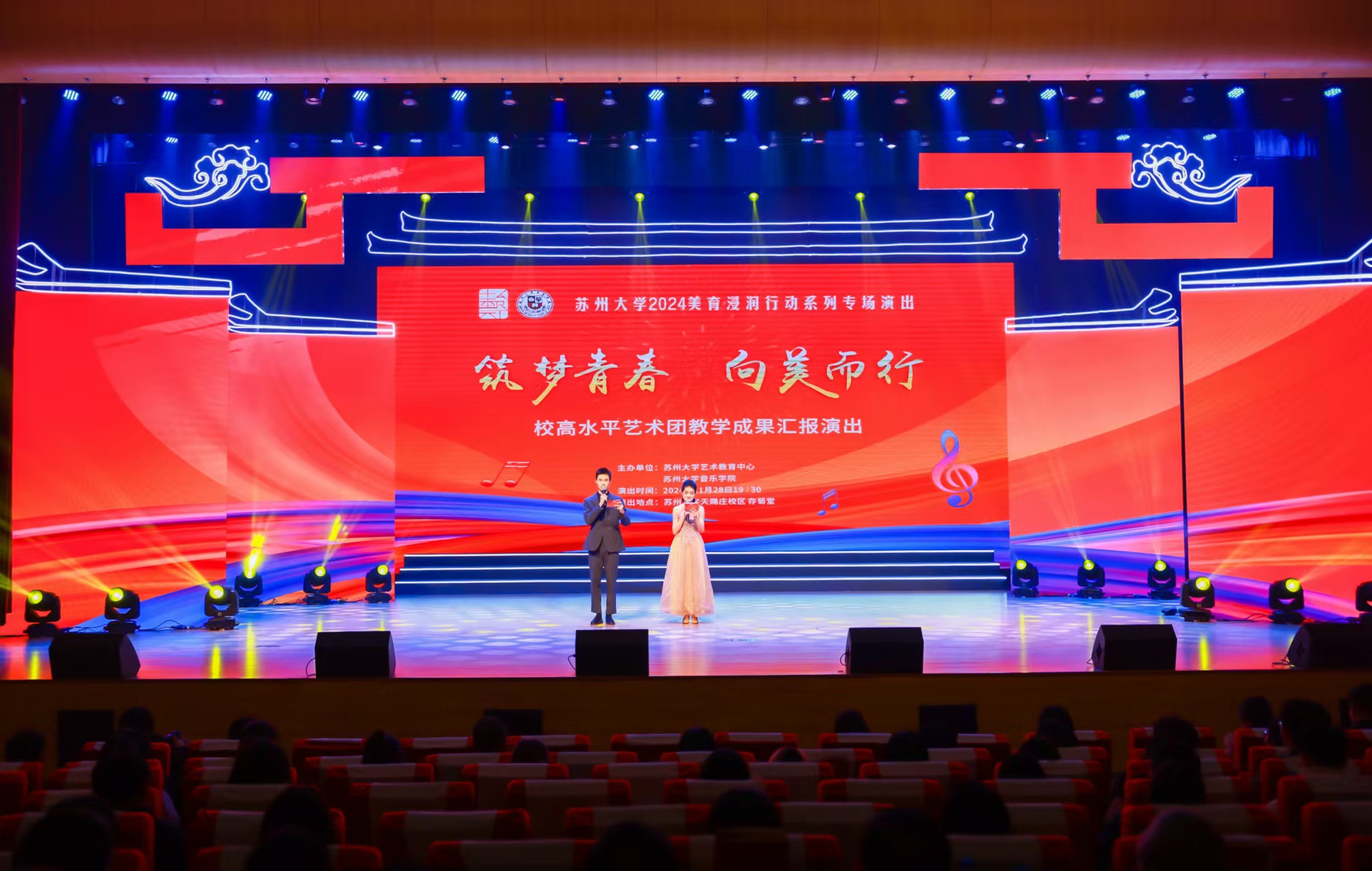 美育是审美教育、情操教育、心灵教育,也是丰富想象力和培养创新意识的教育。在教育部美育浸润行动发布一周年之际,苏州大学2024美育浸润行动系列专场演出——“筑梦青春·向美而行”校高水平艺术团教学成果汇报演出圆满举行。本场演出不仅为观众呈现了一场视听盛宴,一次美育浸润心灵的洗礼,也是对美育浸润行动成效的一次生动检阅。