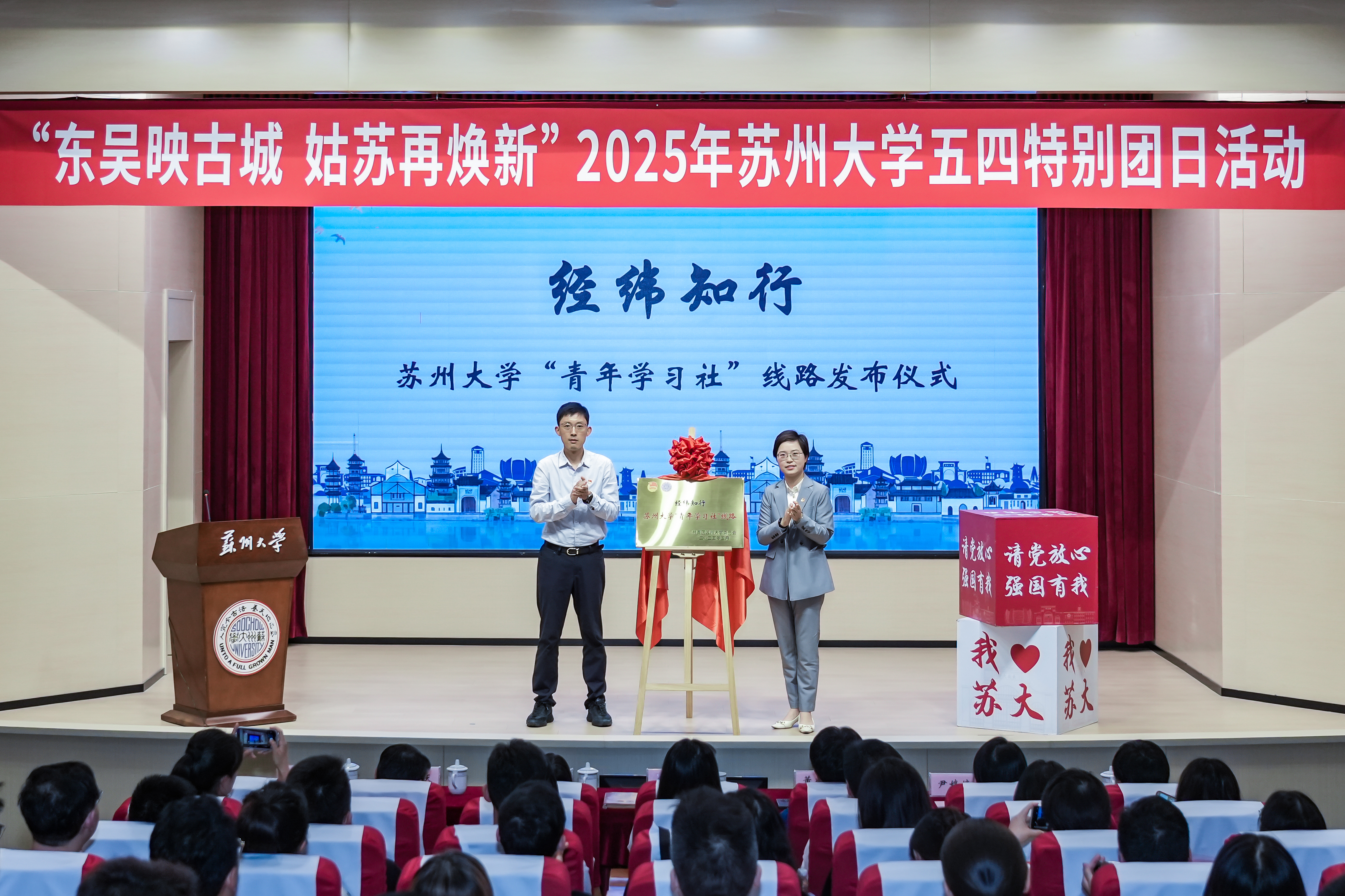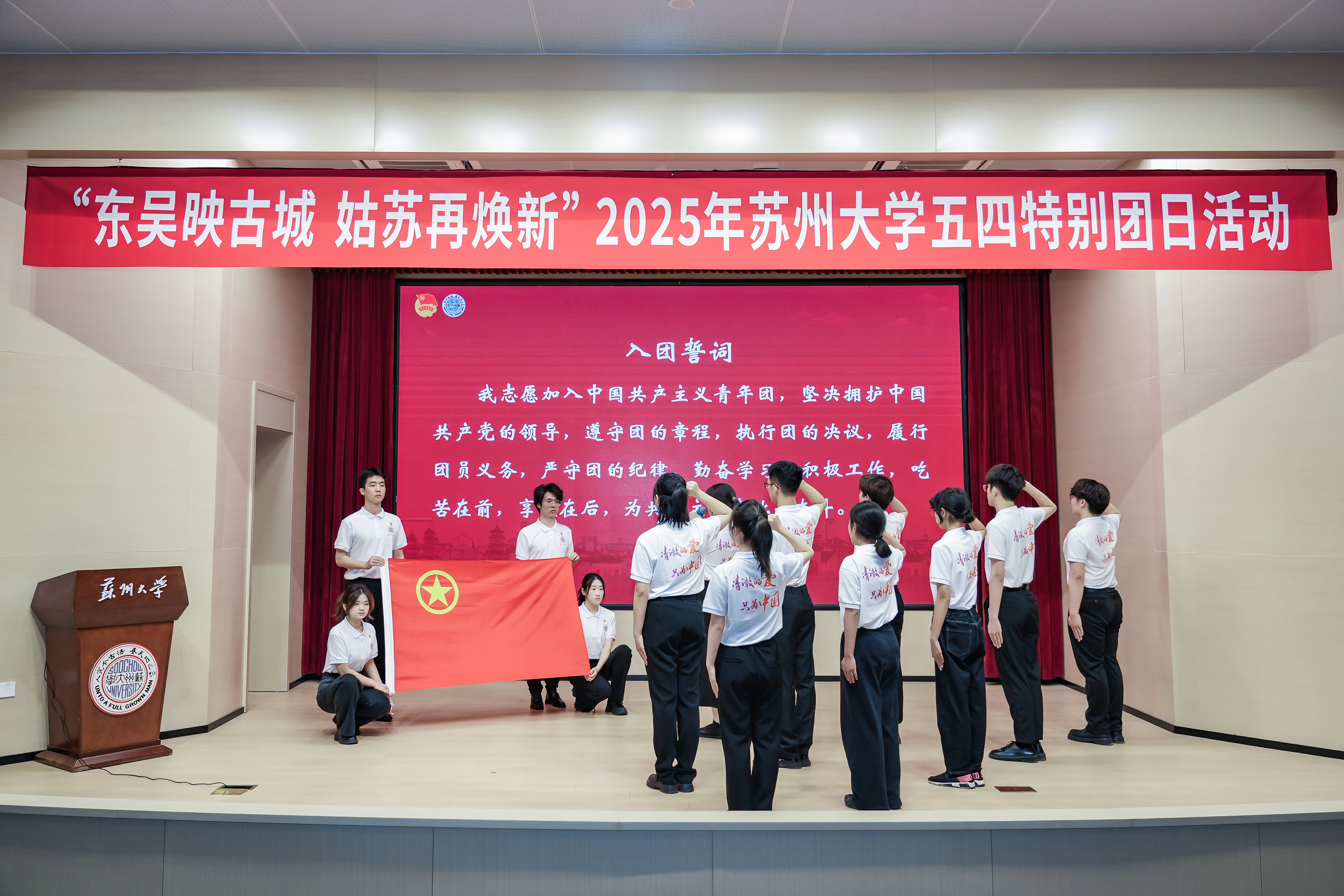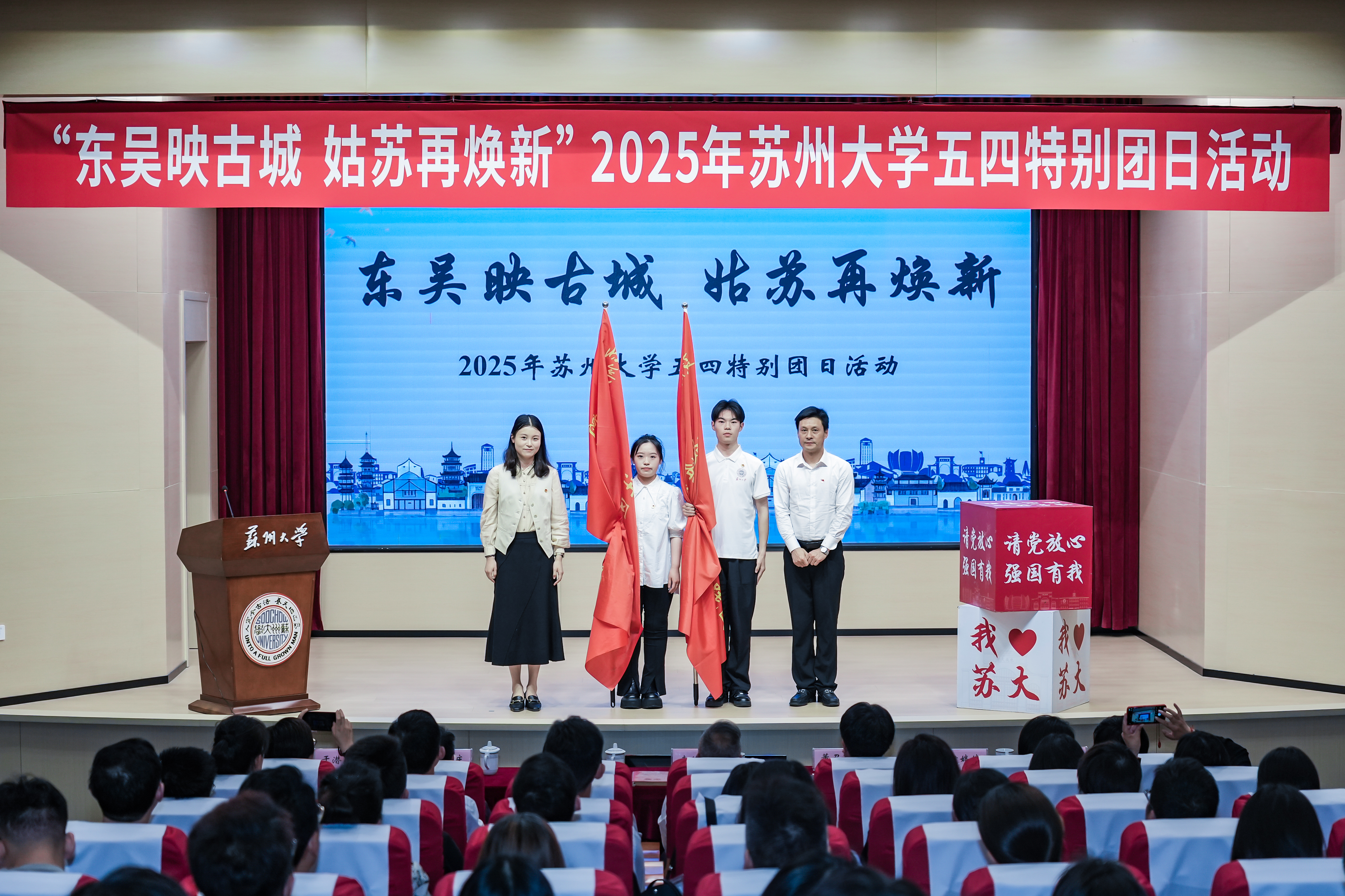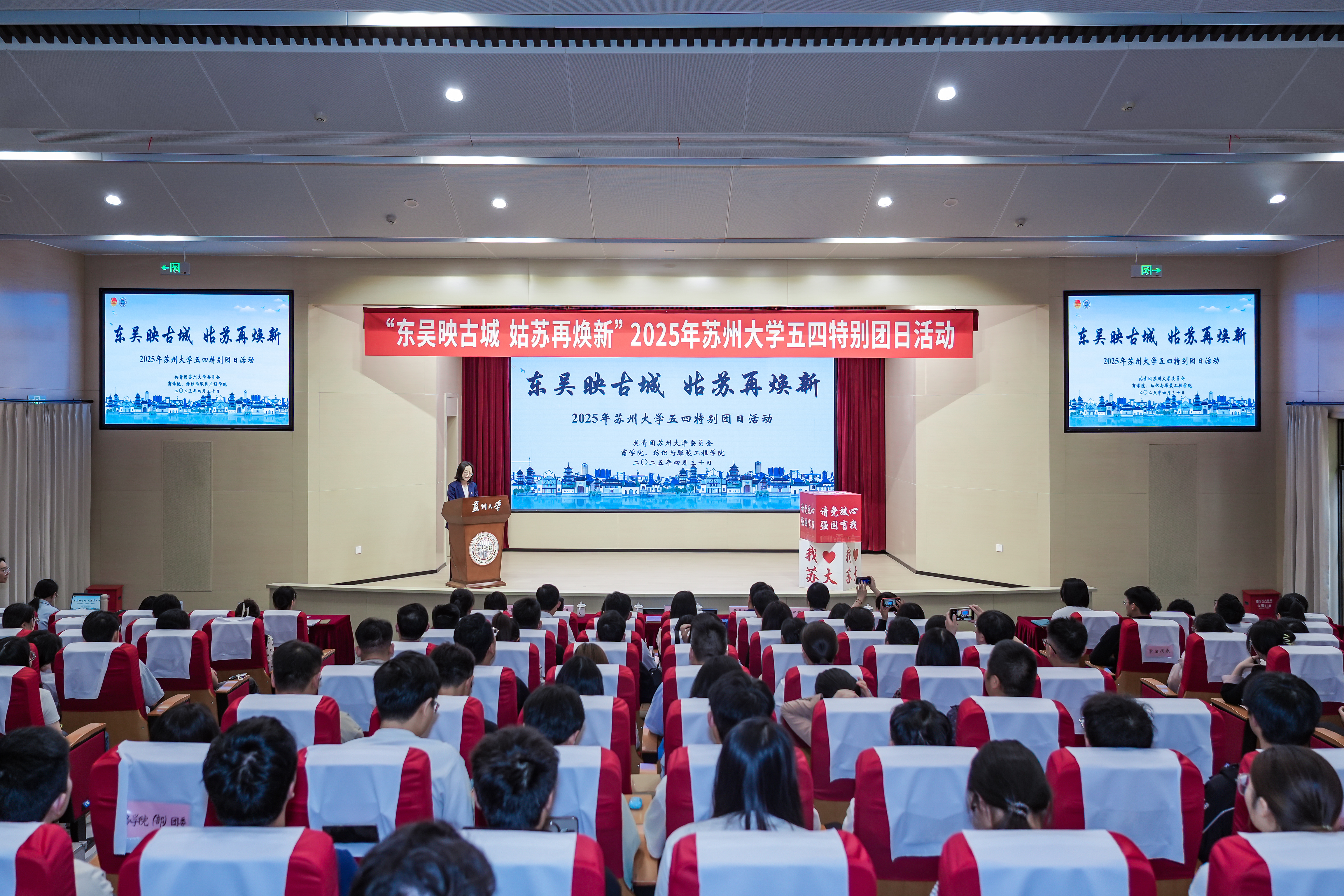 4月30日下午,我校在天赐庄校区红楼学术报告厅举办“东吴映古城 姑苏再焕新”2025年苏州大学五四特别团日活动。校党委常委、副校长查佐明,苏州市姑苏团区委书记卞玮佳出席活动,学校相关职能部门、相关学院负责人,商学院、纺织与服装工程学院的团员青年代表和全校团干部等参加活动。活动由校团委副书记徐娜主持。