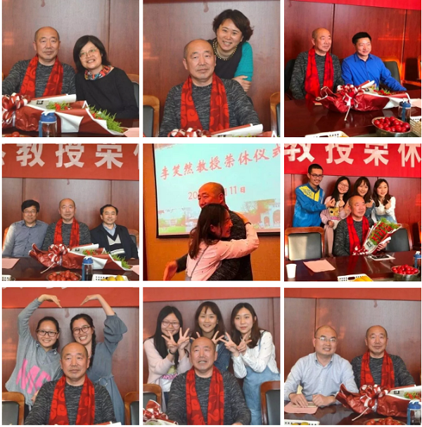 仪式期间,播放了在校学生以及海内外校友给李笑然教授的美好祝福。视频播放过程中,李笑然教授满怀深情地回顾毕业多年学生的姓名和特点,让在座的老师们连声赞叹,他对学生教育的感受与体会、对学校和学院的感谢之情,也深深地感动了在场的每一位师生。