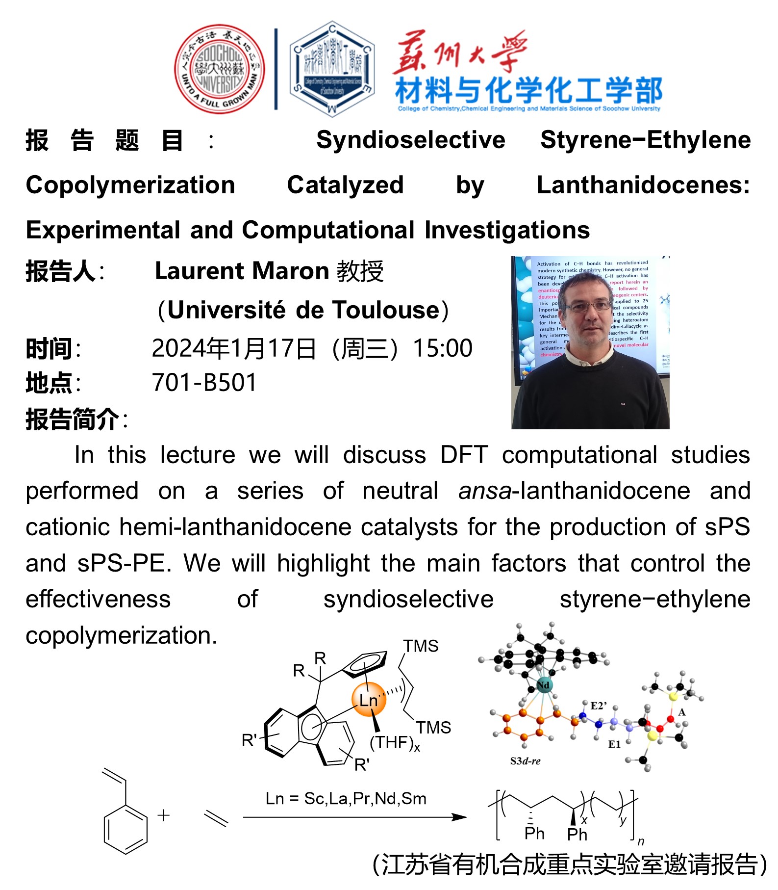 Syndioselective Styrene-Ethylene Copolymerization Catalyzed by Lanthanidocenes: Experimental and Computational Investigations