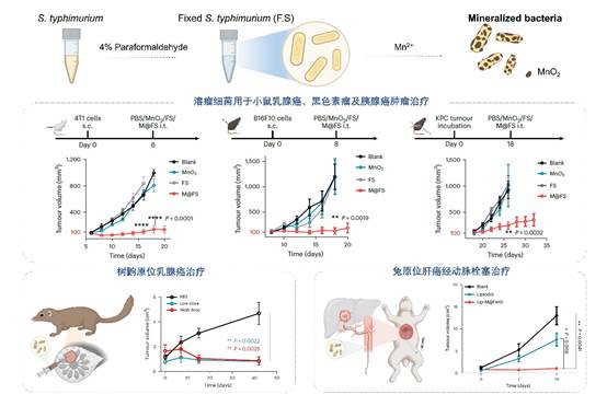 Utilizing bacteria to combat tumors is an innovative technique in cancer treatment. Professors Liu Zhuang, Peng Rui, and Zhao Yongxiang, and Zhong Liping developed a novel tumor treatment strategy by "planting" manganese dioxide nanostructures on the surface of inactivated Salmonella bacteria, creating a unique oncolytic mineralized bacteria for cancer therapy. These oncolytic mineralized bacteria have demonstrated powerful effects against tumors, with significantly improved safety compared to conventional bacterial formulations. Therefore, these oncolytic mineralized bacteria show immense potential to become the next-generation biotherapeutics for cancer immunotherapy.