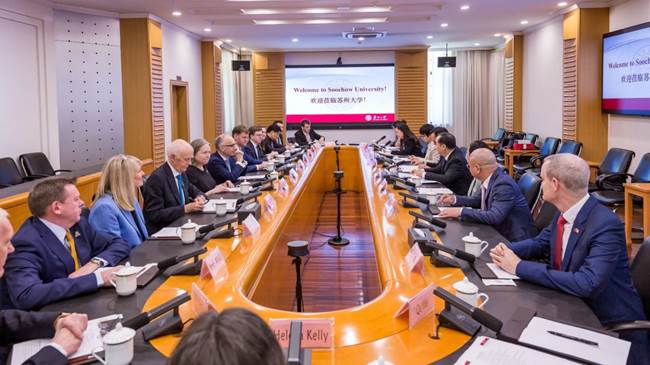 Zhang Xiaohong welcomed the delegation and noted that with the strong support of both Chinese and Irish governments and the joint efforts of both institutions, the International College of Pharmaceutical Innovation has steadily developed its work and achieved notable results. The university will continue to fully support the college's development through policy guarantees, resource coordination, and innovative mechanisms, leveraging Suzhou's advantages as a biomedical industry hub to promote the college's comprehensive development. He expressed hope that the university would further expand exchanges and cooperation with Irish universities and research institutions, jointly advancing China-Ireland higher education cooperation to new heights.