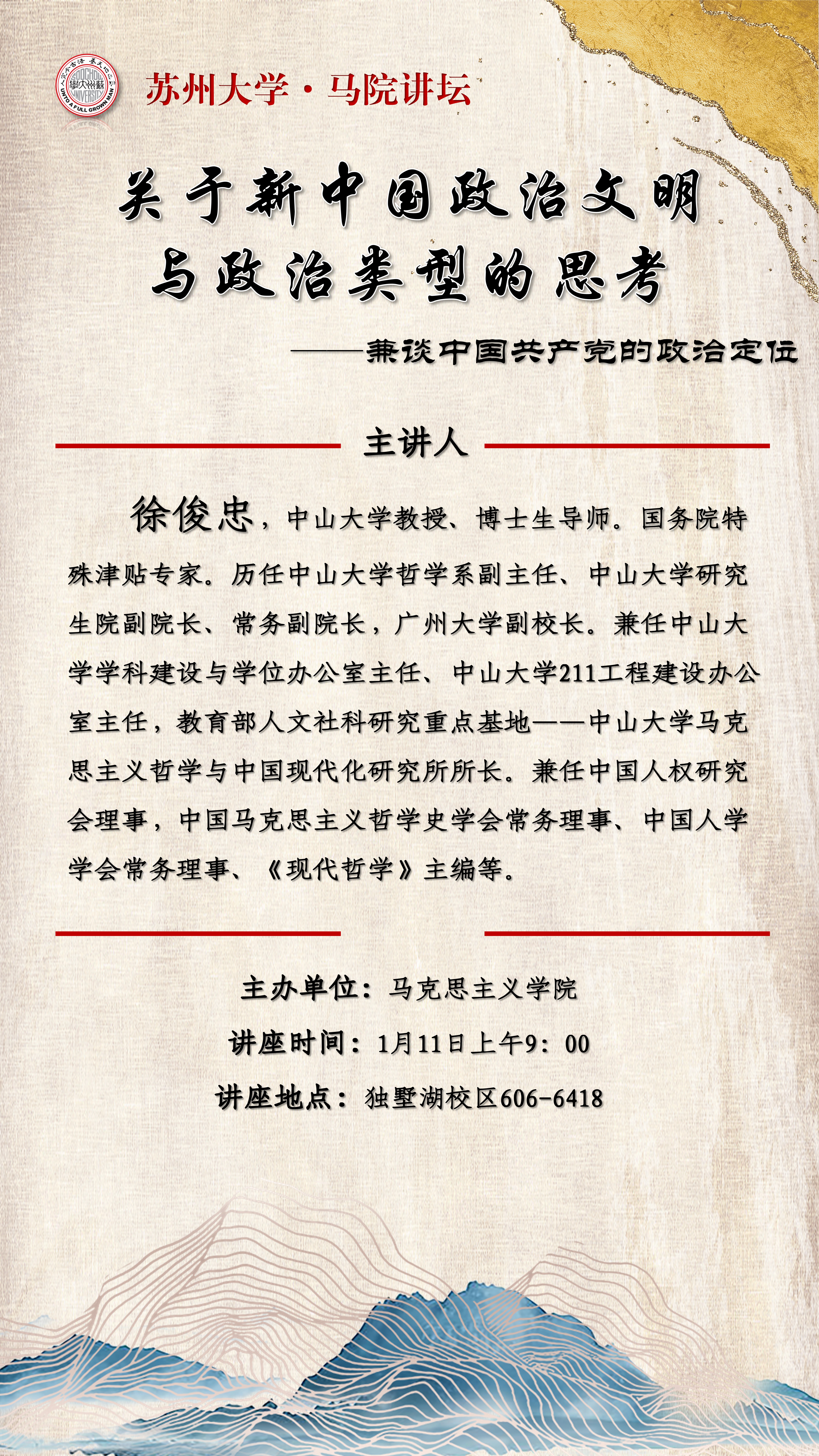 马克思主义学院讲座:关于新中国政治文明与政治类型的思考——兼谈中国共产党的政治定位