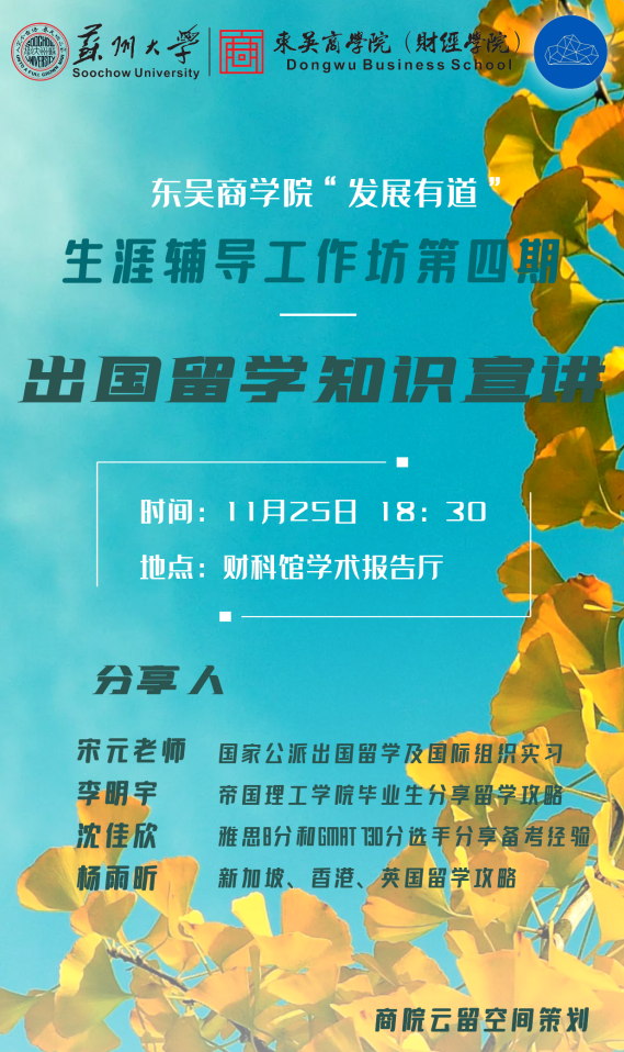 东吴商学院“发展有道”生涯辅导工作坊第4期——出国留学知识宣讲