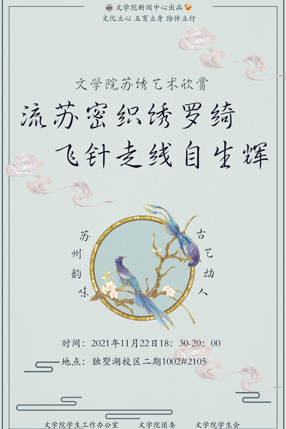 “流苏密织绣罗绮,飞针走线自生辉”——文学院苏绣艺术欣赏