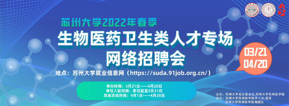 苏州大学2022年春季生物医药卫生类人才专场网络招聘会