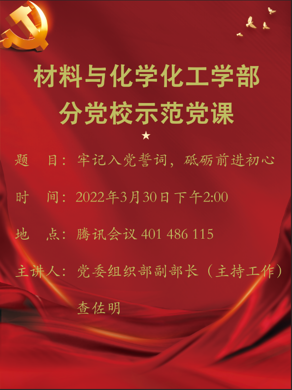 材料与化学化工学部分党校示范党课:牢记入党誓词,砥砺前进初心