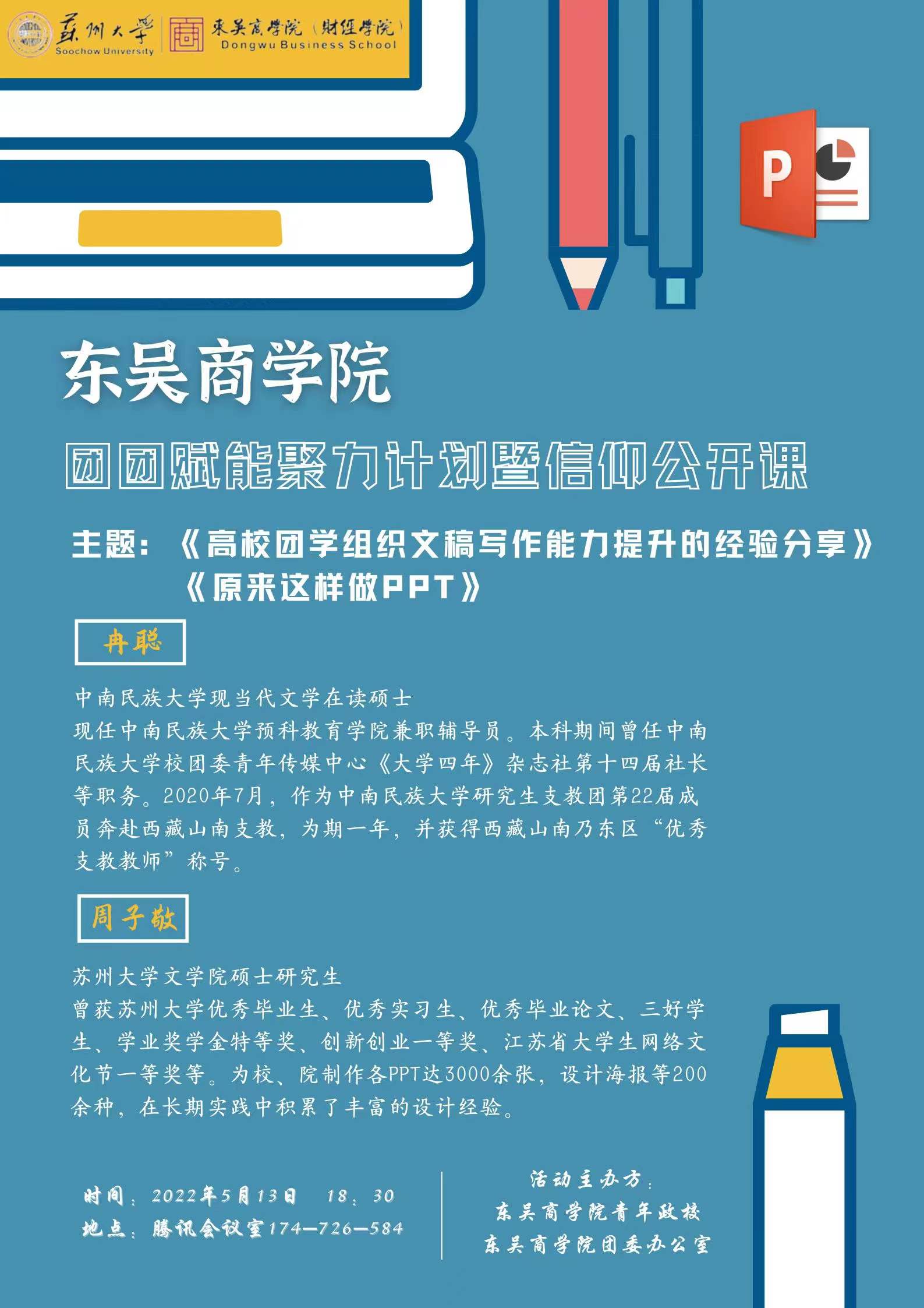 东吴商学院 “团团赋能聚力计划暨信仰公开课”:团学组织文稿写作与PPT制作