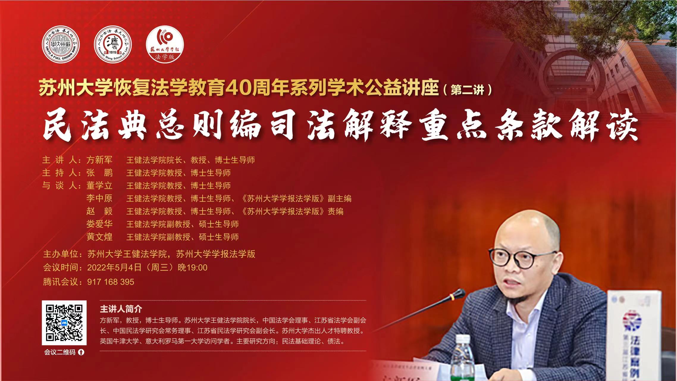 苏州大学恢复法学教育40周年系列学术公益讲座(第二讲)——方新军:民法典总则编司法解释重点条款解读