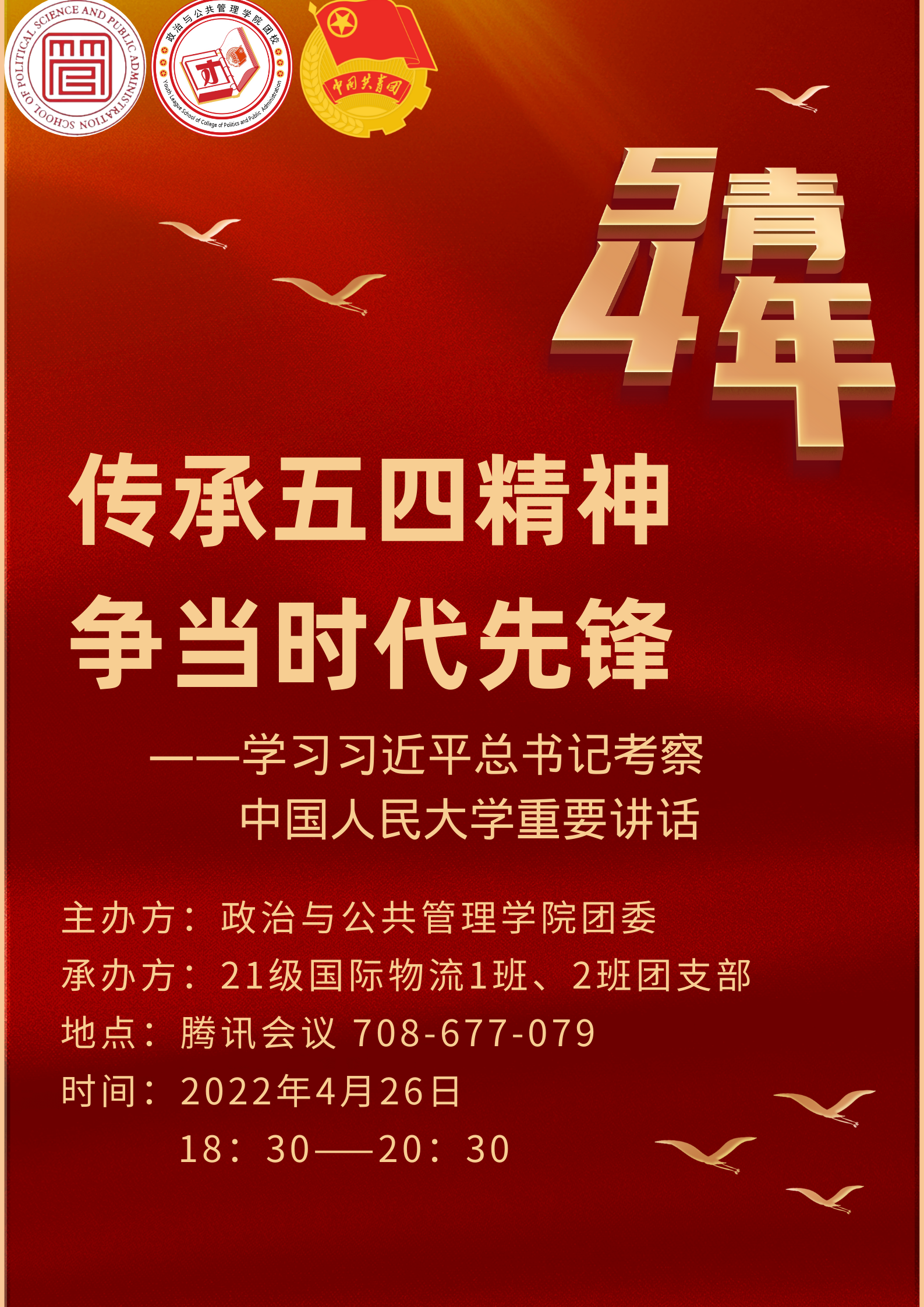 政治与公共管理学院”传承五四精神 争当时代先锋“——学习习近平总书记考察中国人民大学重要讲话