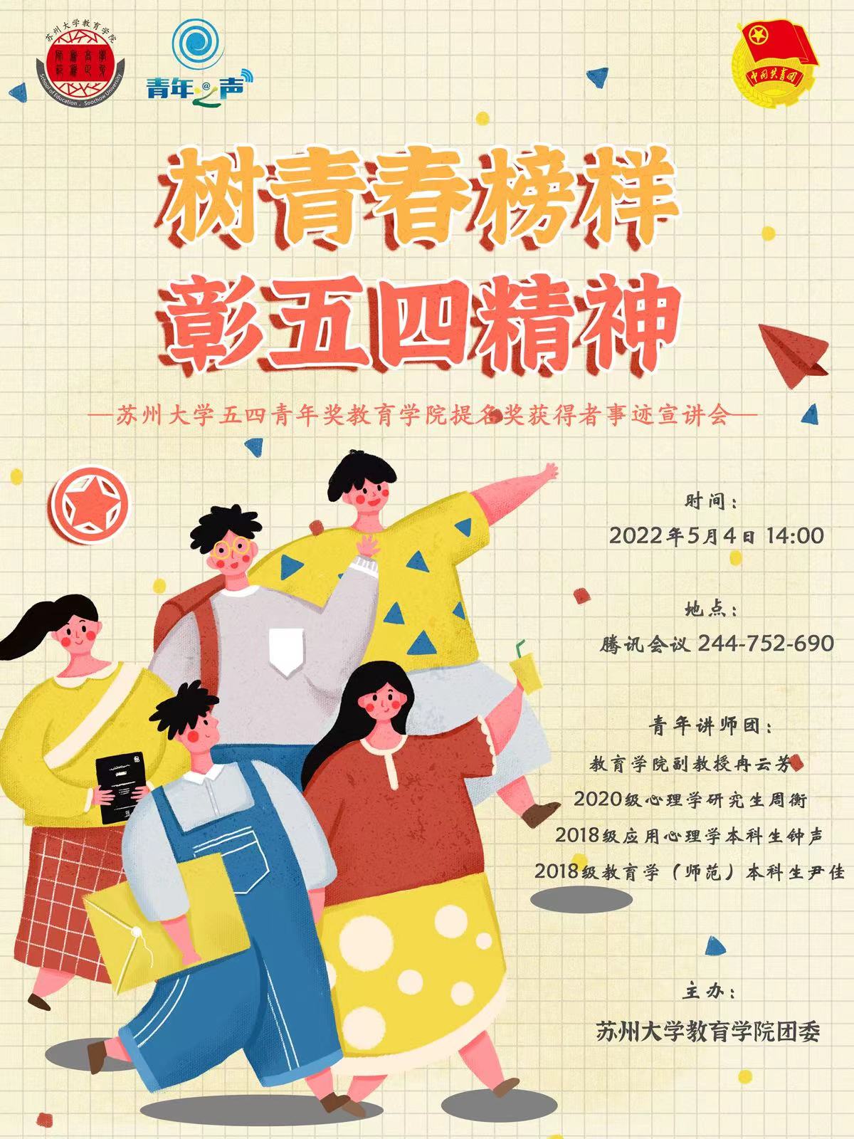 “树青春榜样,彰五四精神”——苏州大学五四青年奖教育学院提名奖获得者事迹宣讲会