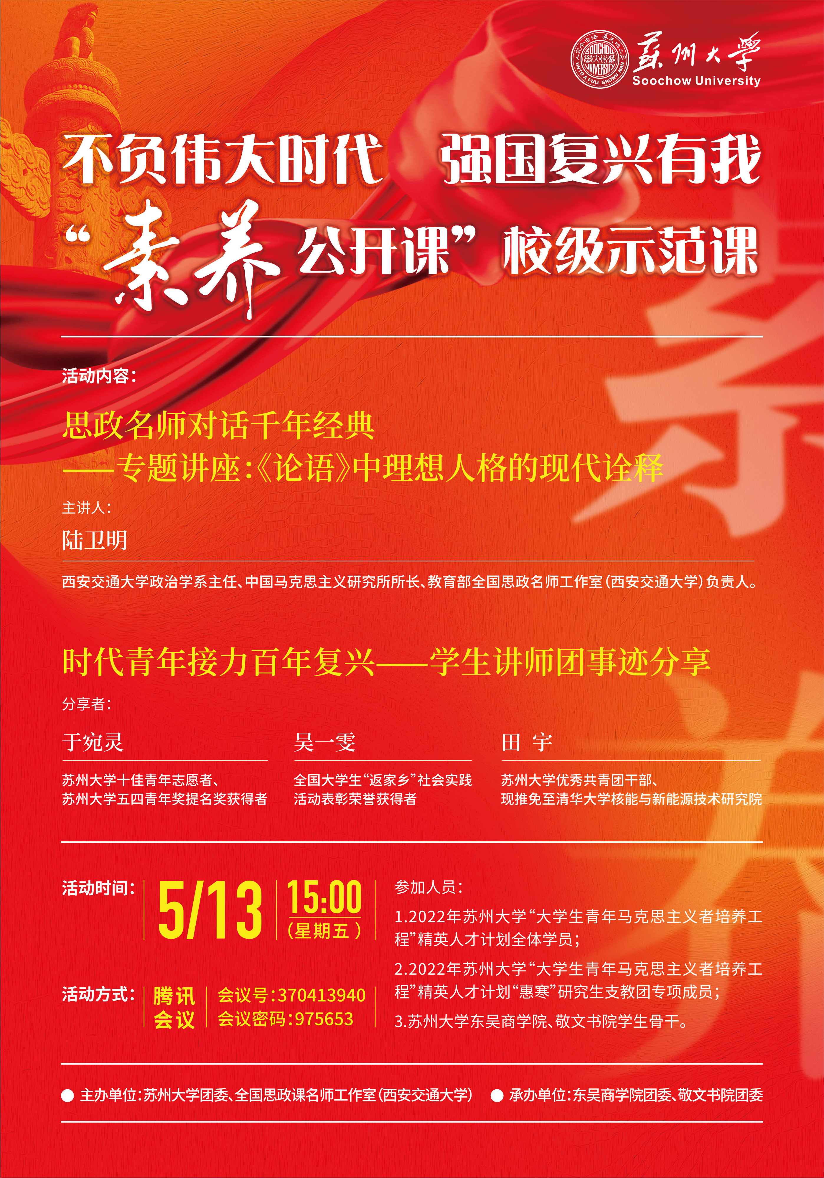 东吴商学院、敬文书院:“不负伟大时代,强国复兴有我”素养公开课校级示范课