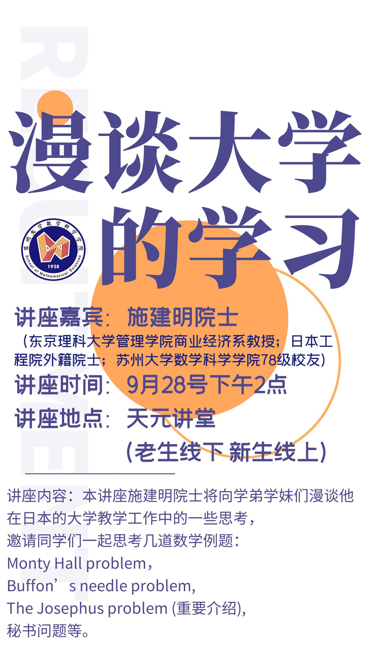 数学科学学院讲座:施建明院士漫谈大学的学习
