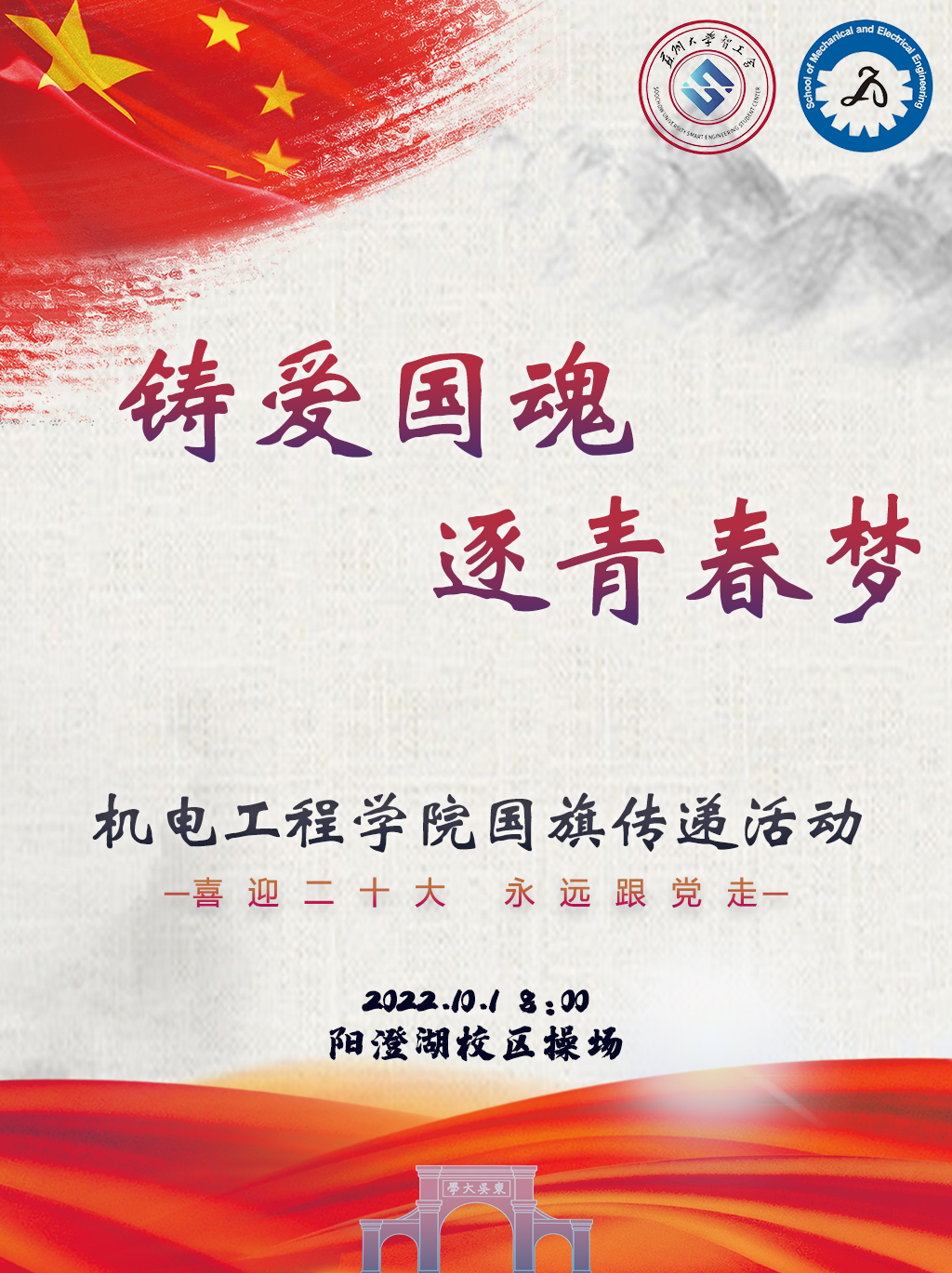 铸爱国魂,逐青春梦——机电工程学院“喜迎二十大 永远跟党走”国旗传递活动