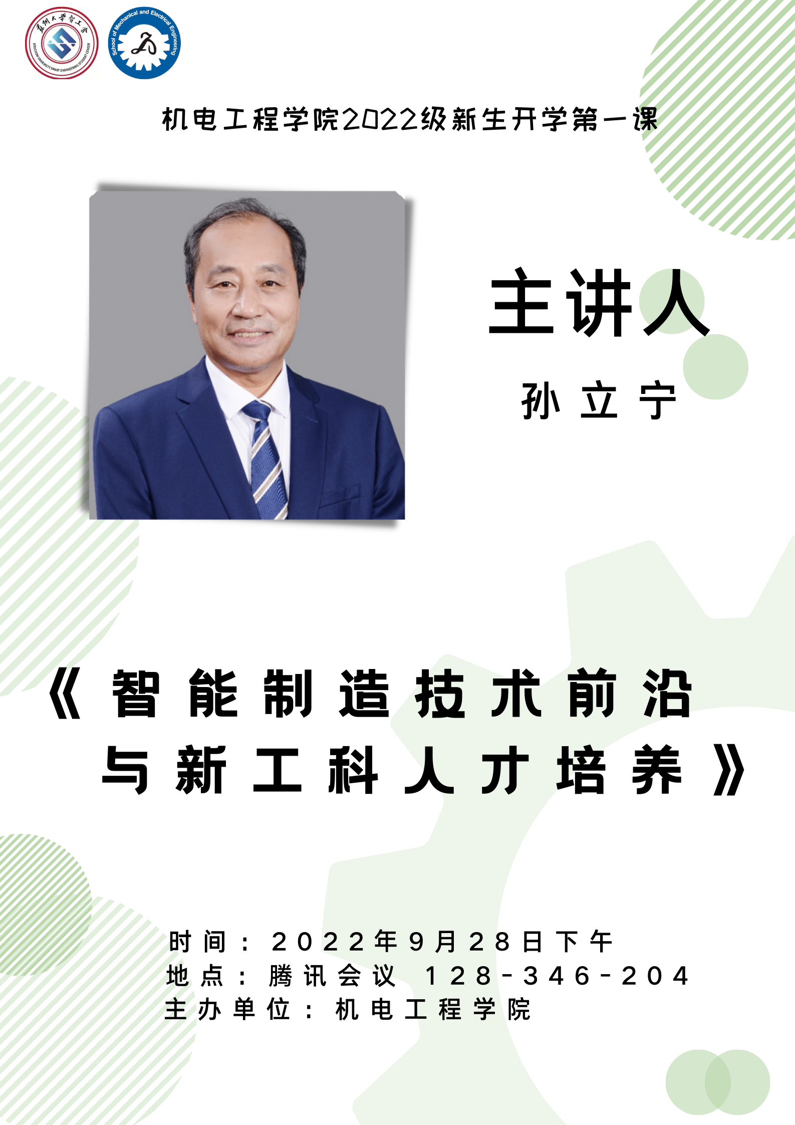 机电工程学院新生第一课:《智能制造技术前沿与新工科人才培养》