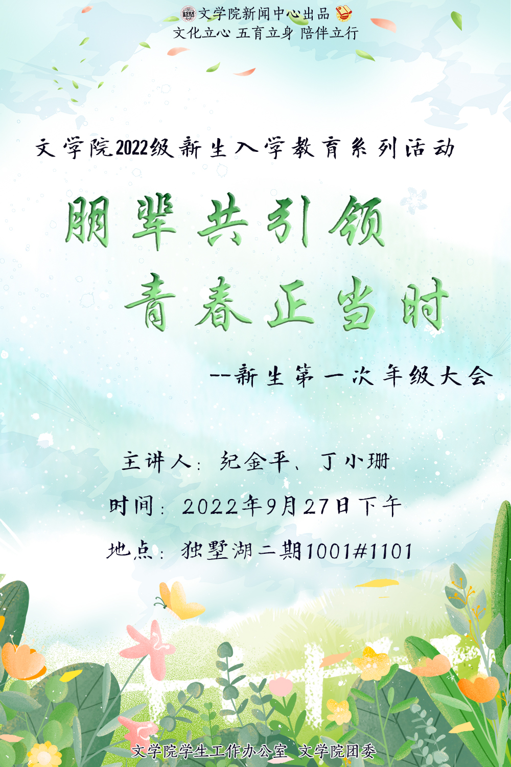 文学院2022级新生入学教育系列活动之“朋辈共引领,青春正当时”新生第一次年级大会