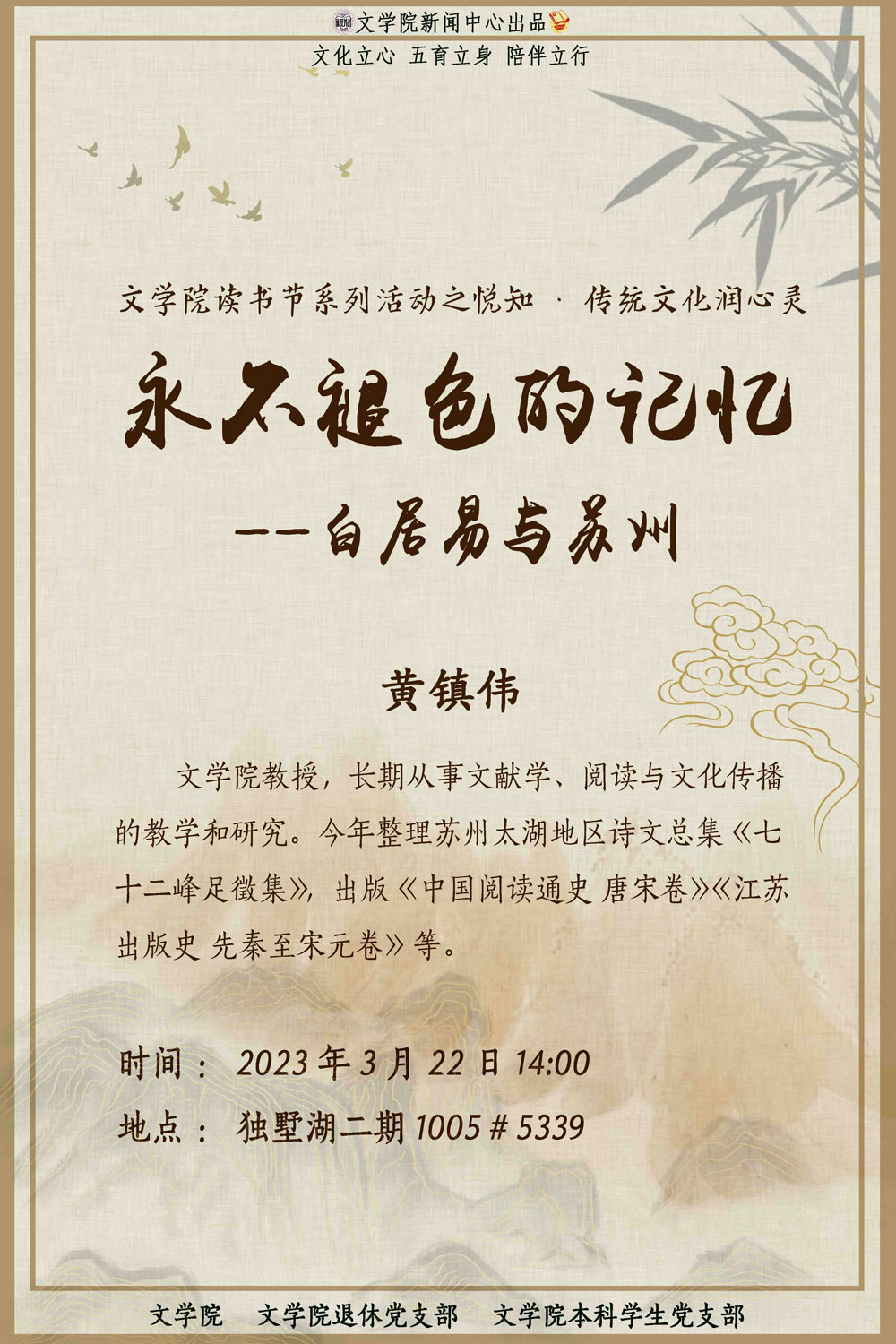 文学院读书节系列活动之悦知·传统文化润心灵:永不褪色的记忆——白居易与苏州