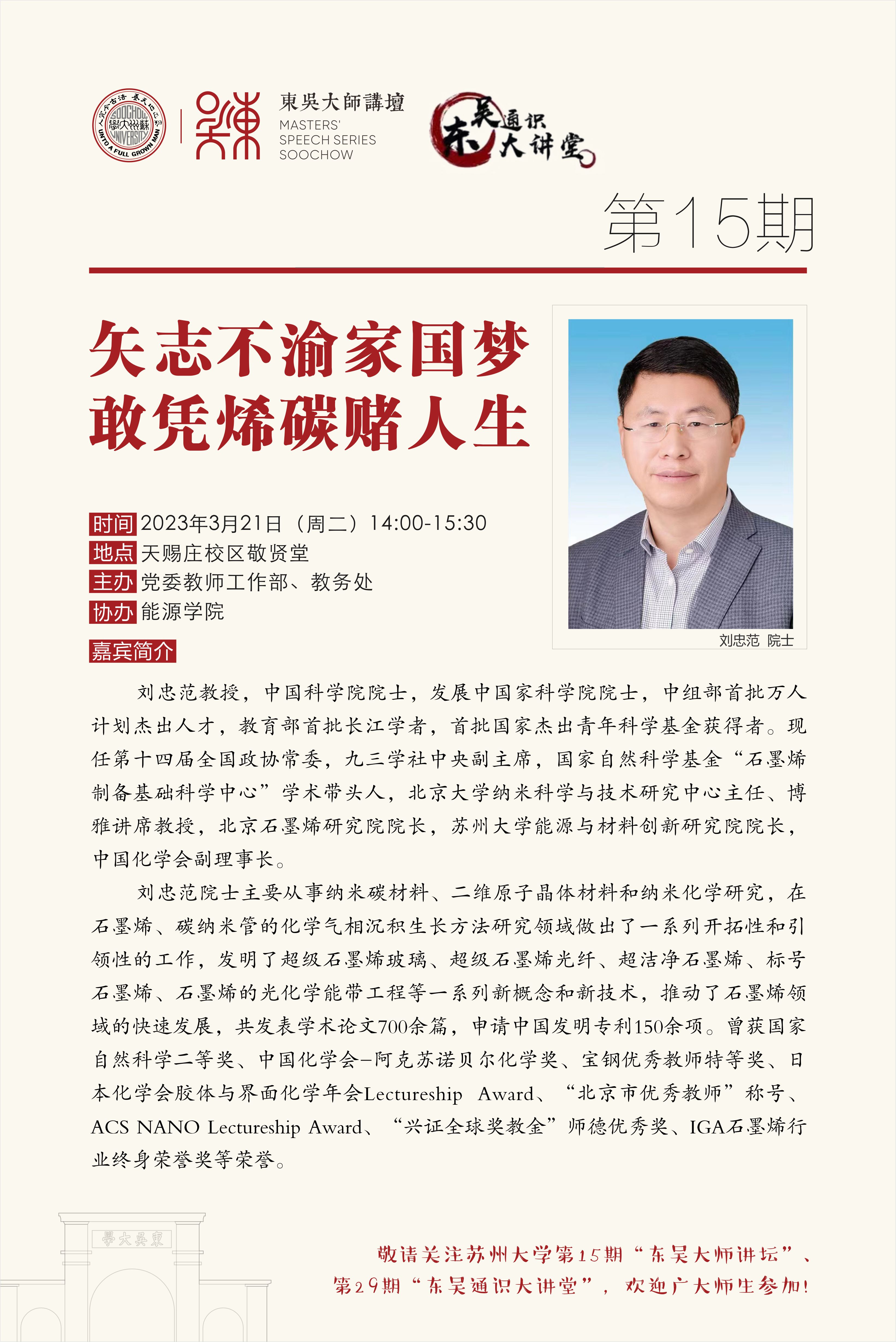 东吴大师讲坛第十五期:矢志不渝家国梦,敢凭烯碳赌人生