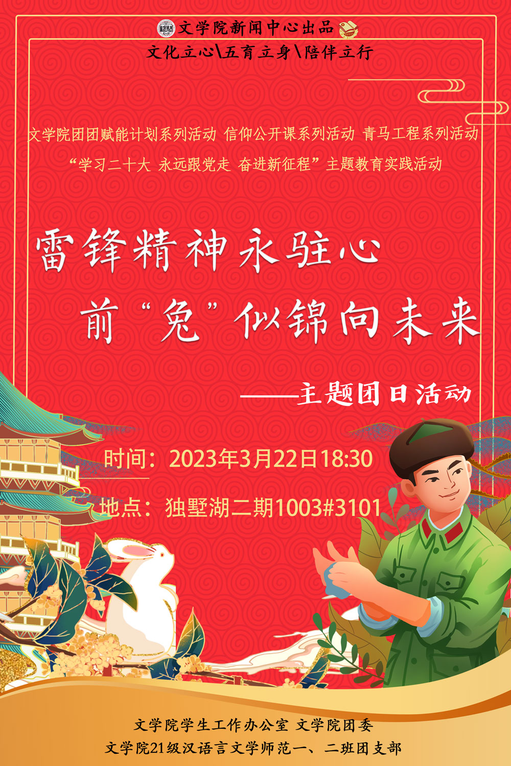 文学院汉语言文学师范一、二班“雷锋精神永驻心,前‘兔’似锦向未来”主题团日活动