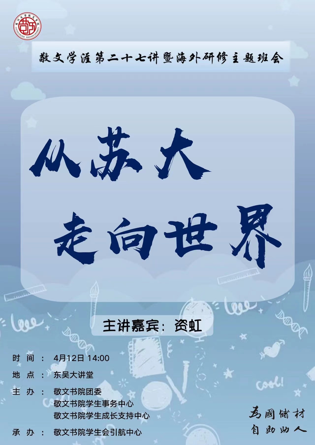 敬文学涯第二十七讲暨海外研修主题班会——从苏大走向世界