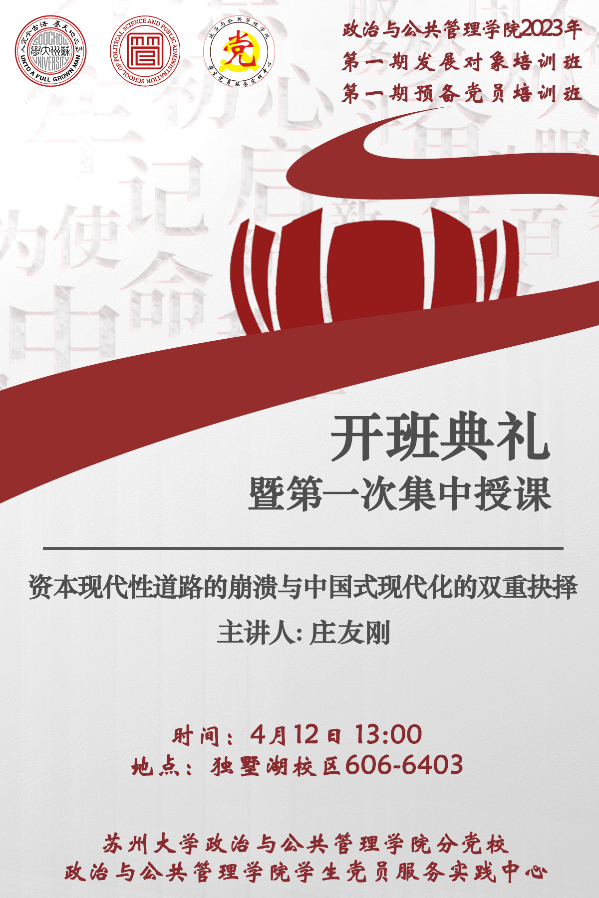 政治与公共管理学院2023年第一期发展对象、第一期预备党员培训班开班典礼暨第一次集中授课