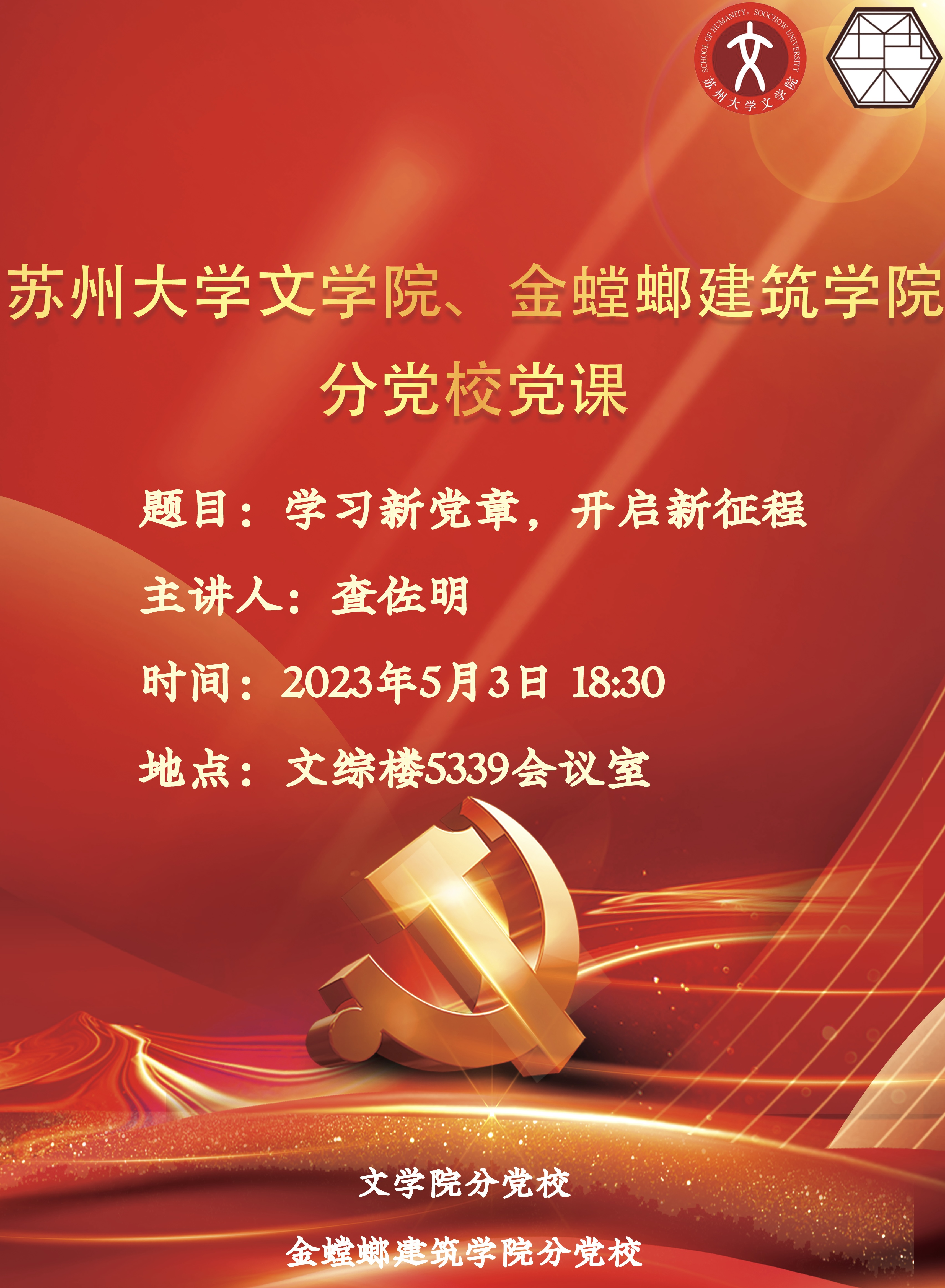 文学院、金螳螂建筑学院分党校党课:学习新党章,开启新征程