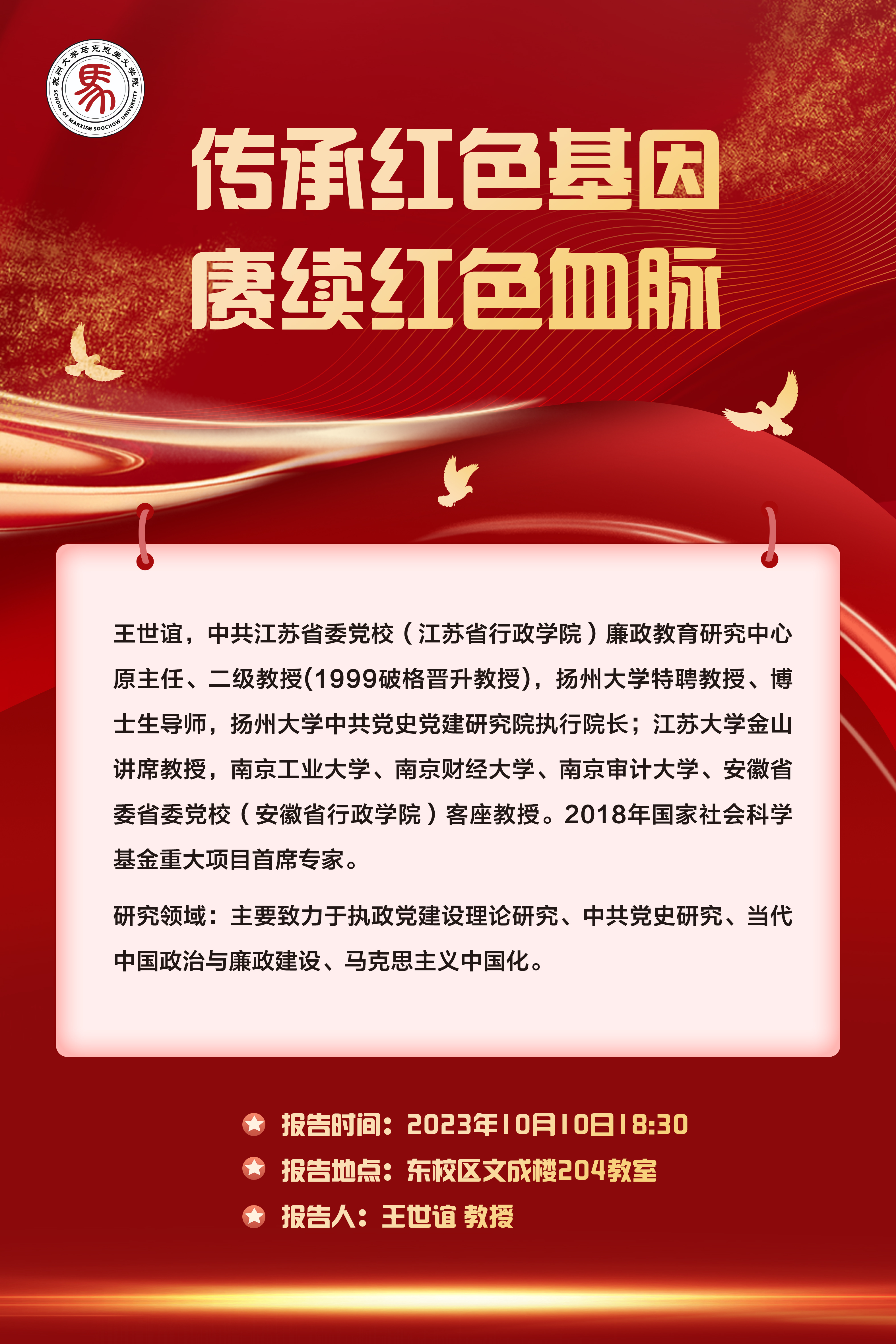 马克思主义学院学术报告:传承红色基因 赓续红色血脉