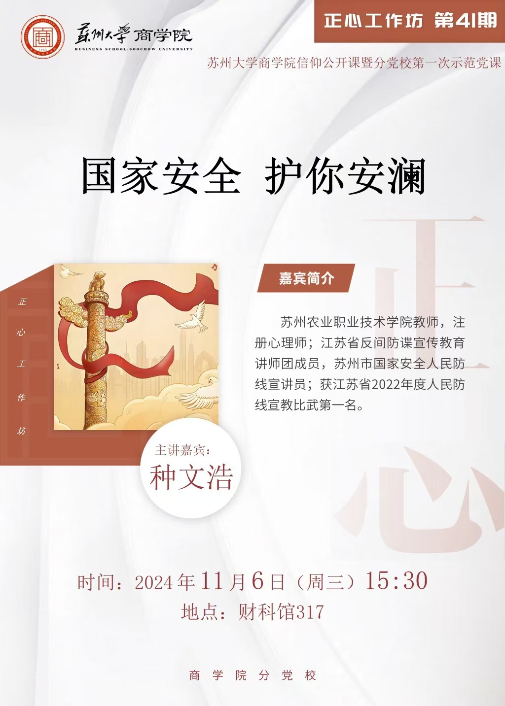 商学院正心工作坊第41期 信仰公开课暨分党校第一次示范党课——国家安全 护你安澜