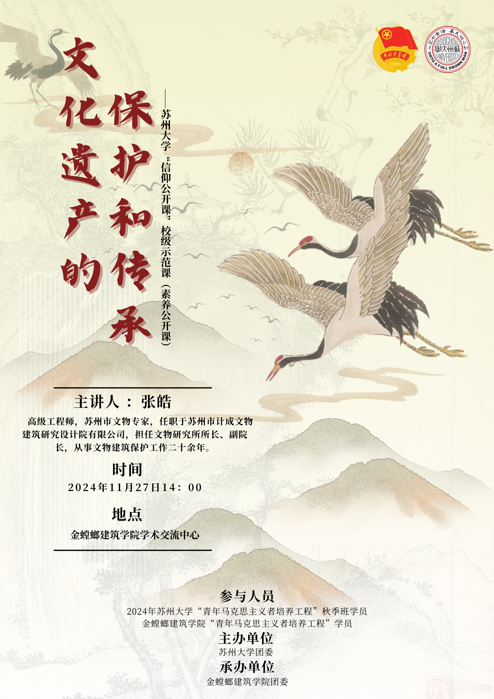 文化遗产的保护和传承——苏州大学”信仰公开课“校级示范课(素养公开课)