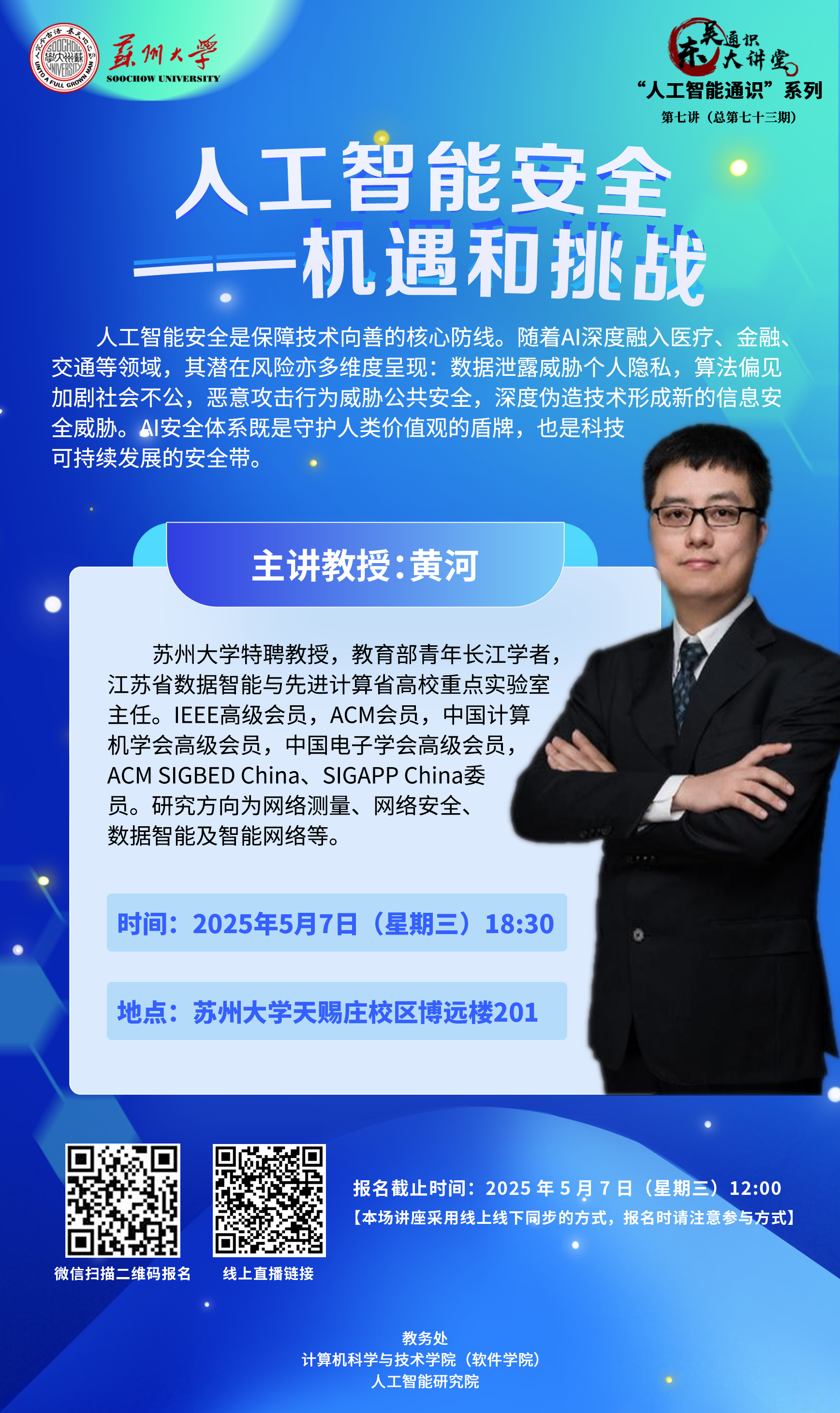 东吴通识大讲堂“人工智能通识”系列第七讲(总第七十三期):人工智能安全——机遇和挑战