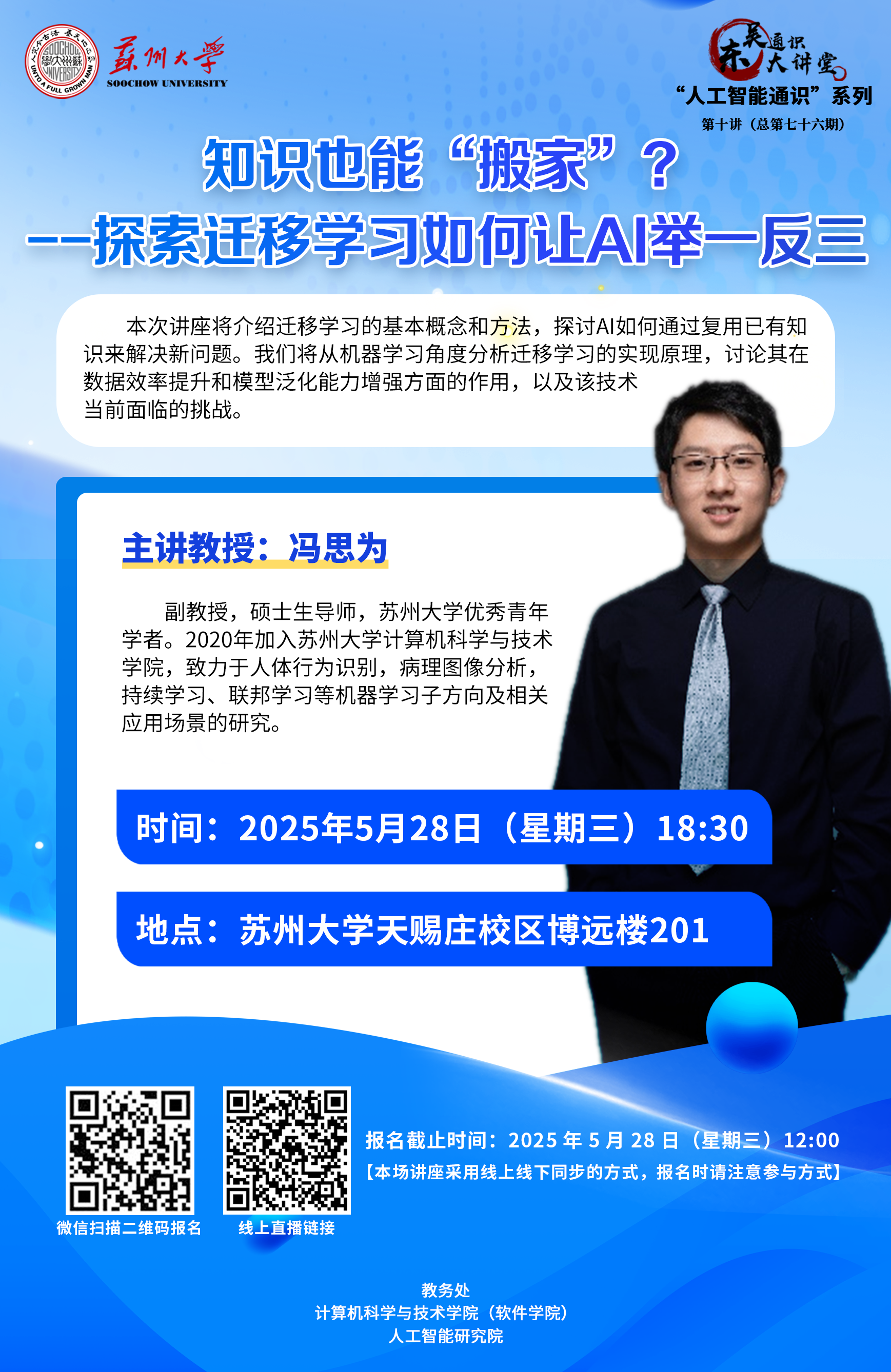 东吴通识大讲堂“人工智能通识”系列 第十讲(总第七十六期):知识也能“搬家”?——探索迁移学习如何让AI举一反三
