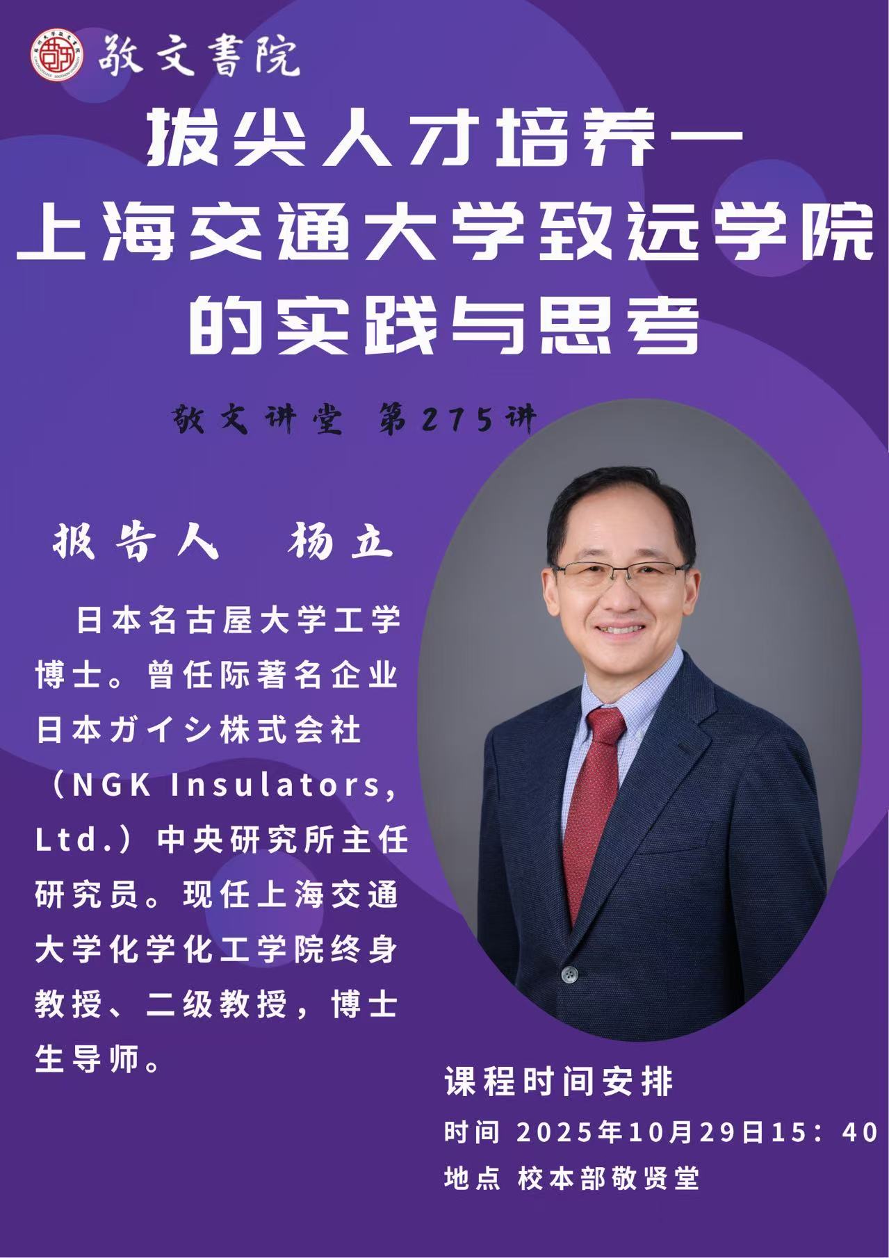 敬文讲堂第275讲:拔尖人才培养——上海交通大学致远学院的实践与思考