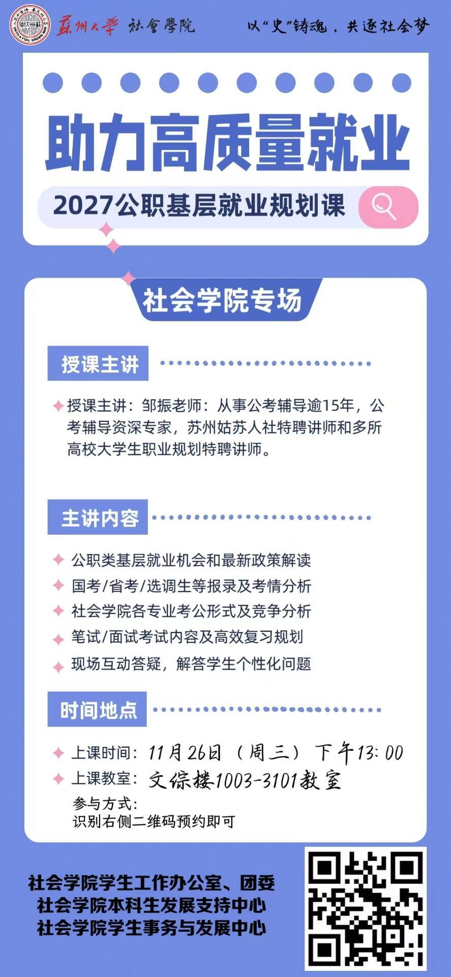 社会学院就业指导系列活动之公职基层就业规划专题讲座