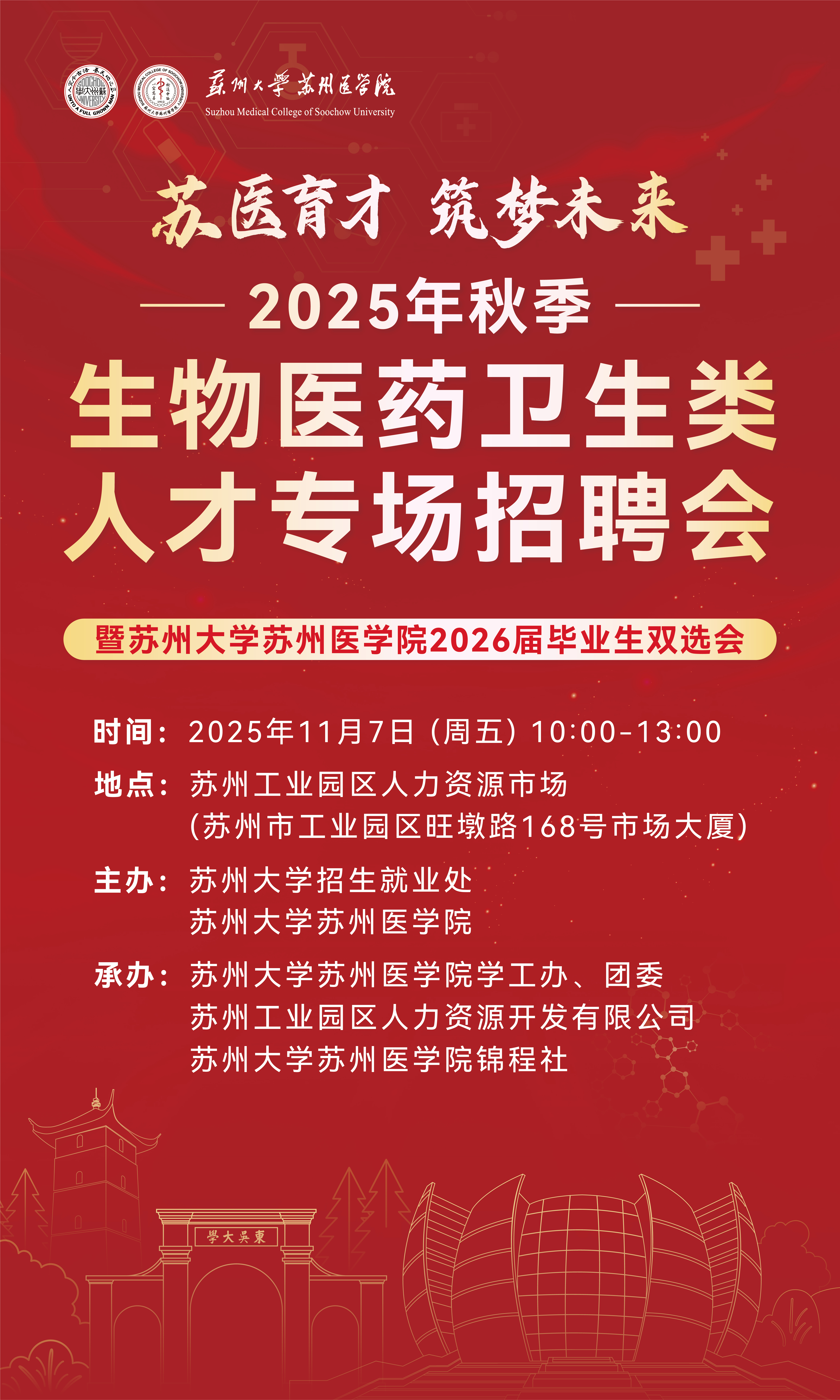 苏州大学2025年秋季生物医药卫生类人才专场招聘会暨苏州医学院2026届毕业生双选会