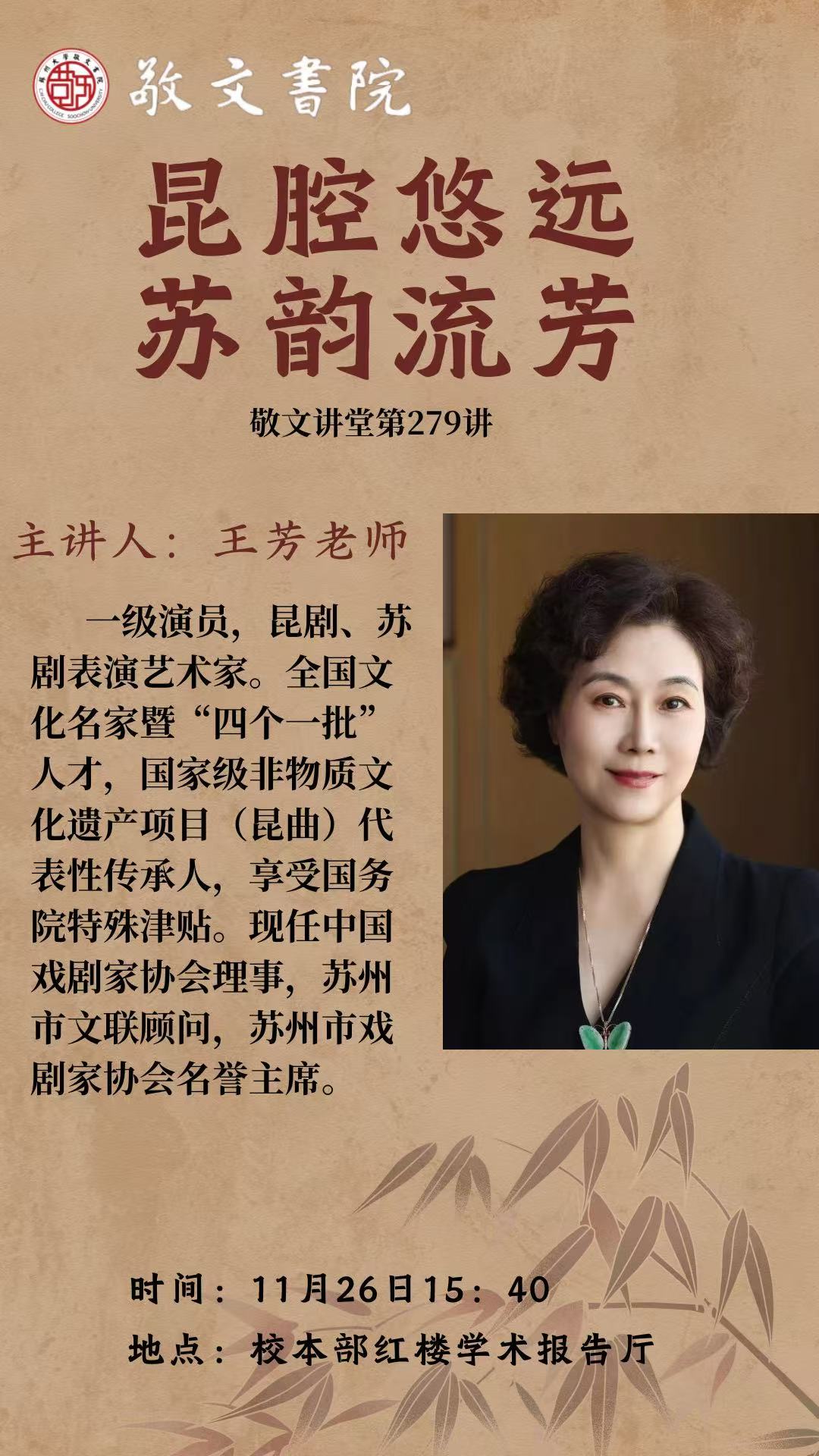 敬文讲堂第279讲:昆腔悠远,苏韵流芳