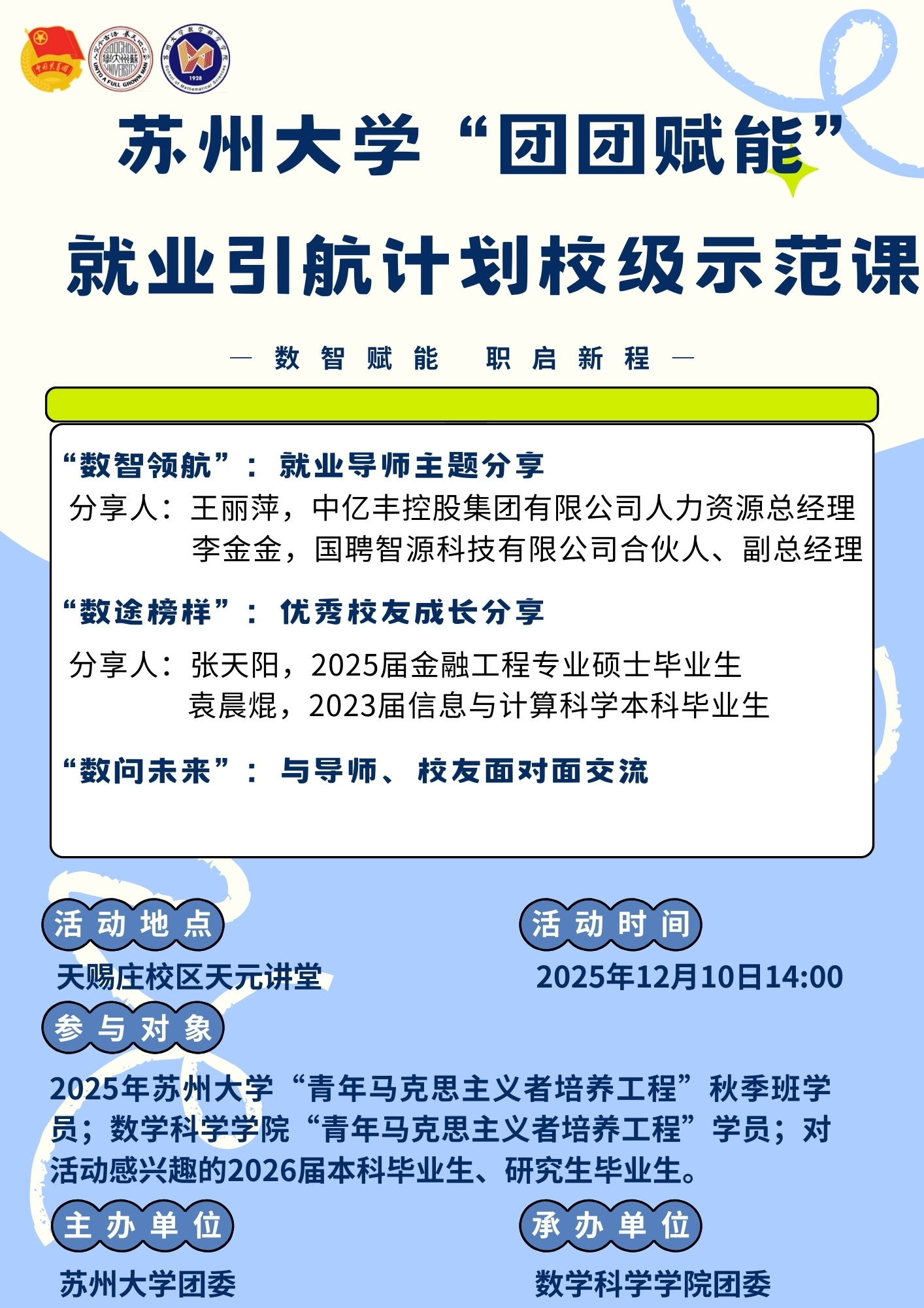 苏州大学“团团赋能”就业引航计划校级示范课——数智赋能 职启新程